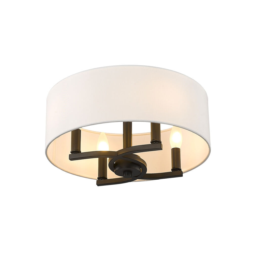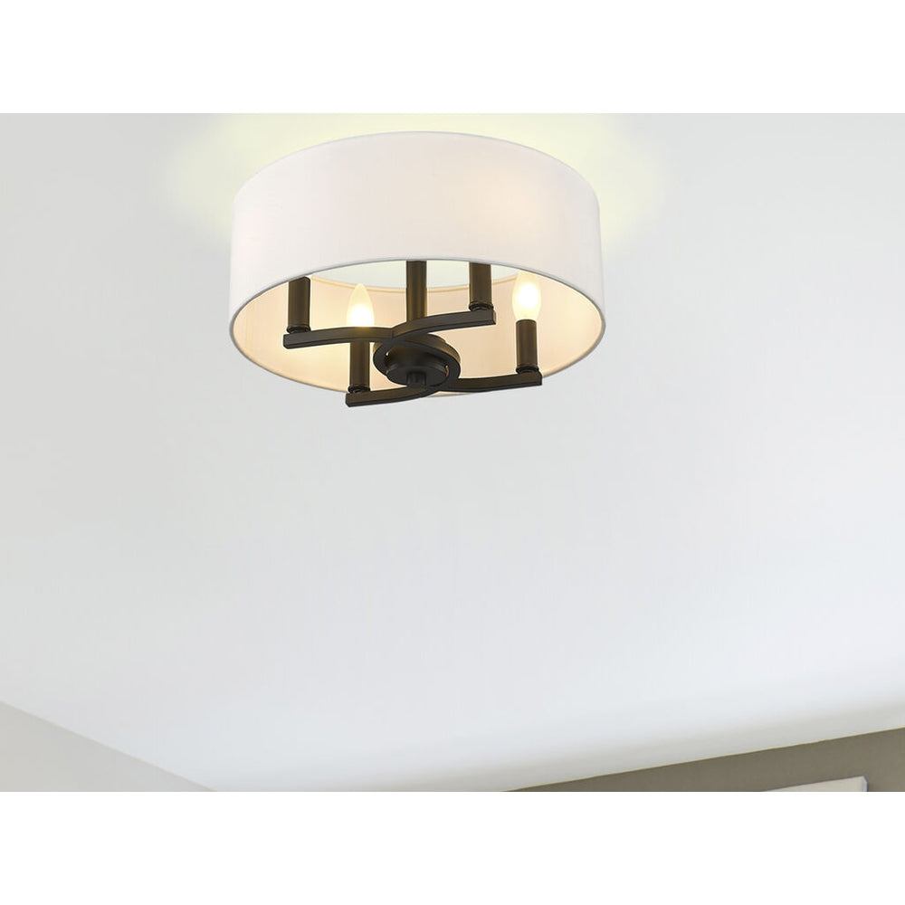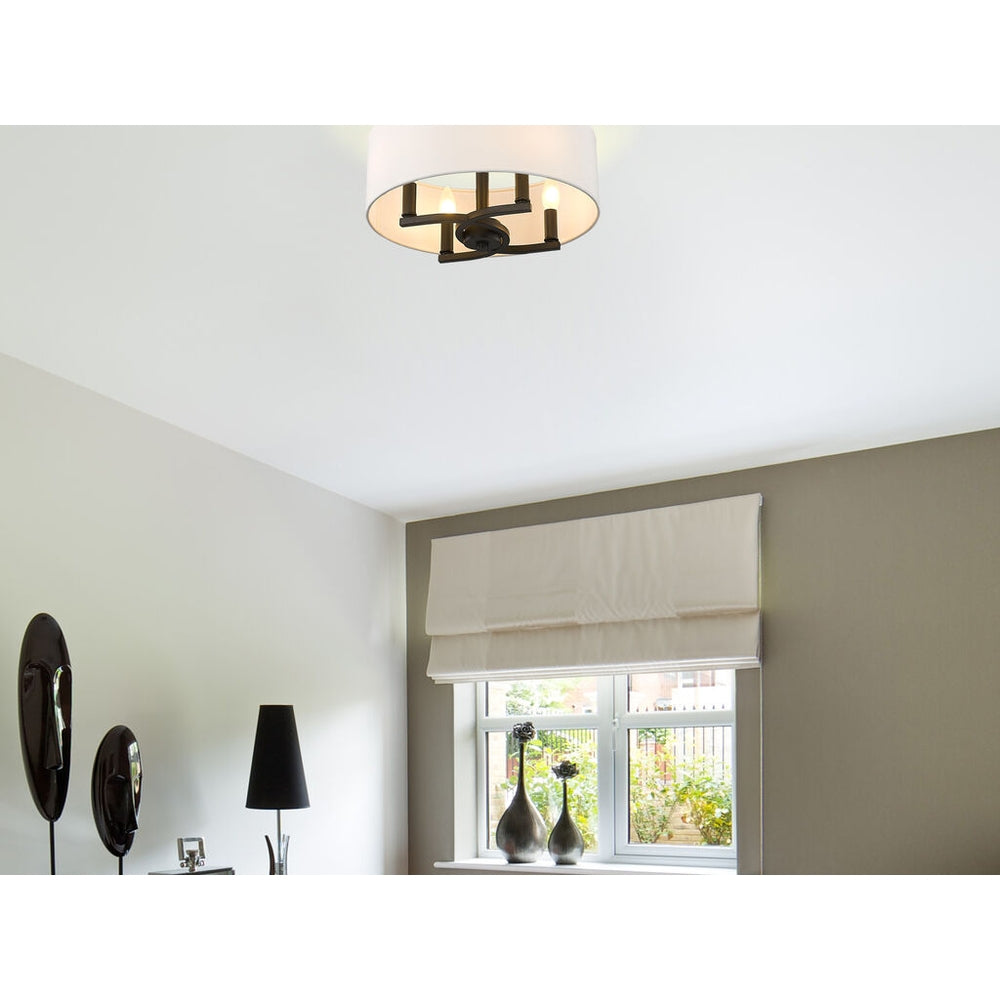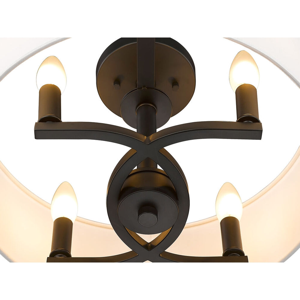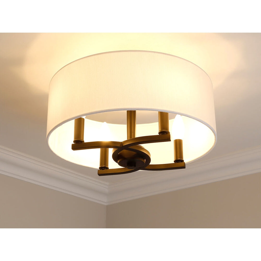 Stylishly designed, Eliana is the epitome of Traditional elegance in an updated Transitional form. This black and white design is perfect for most spaces. Contrasting the smooth Matte Black finish, a fashionable and crisp Modern White Shade gently diffuses the light. With partially exposed bulbs, this 4-light semi-flush is sure to provide ample illumination.
