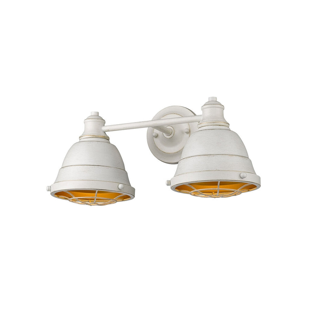 The Bartlett collection features industrial, vintage-inspired fixtures with simple, traditional silhouettes that are a nod to a bygone era. The collection features authentic details like caged diffusers and exposed hardware. Available in a selection of rustic finishes. This 2-light bath vanity is UL approved damp locations.