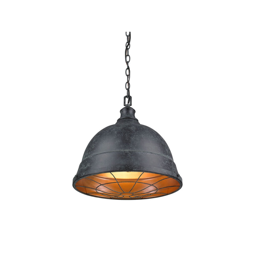 Golden Lighting's Bartlett collection features industrial, vintage-inspired fixtures with simple, traditional silhouettes that are a nod to a bygone era. The collection features authentic details like caged diffusers and exposed hardware. The Black Patina finish is lightly weathered. This large 2 light pendant creates a soft glow for task lighting.