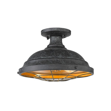 The Bartlett collection features industrial, vintage-inspired fixtures with simple, traditional silhouettes that are a nod to a bygone era. The collection features authentic details like caged diffusers and exposed hardware. Available in a selection of rustic finishes. This semi-flush fixture is great for foyers, nooks, and cozy dining rooms.