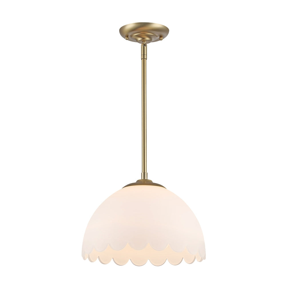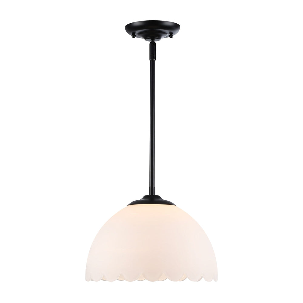 Dorinda's transitional design is fit for a variety of decors. The scalloped opal glass shade gives the fixture a gentle, whimsical feel. When lit, the smooth glass glows warmly. Vintage-inspired and paired with select finishes, Dorinda has a sweet, classic look that is ready to grace your home.