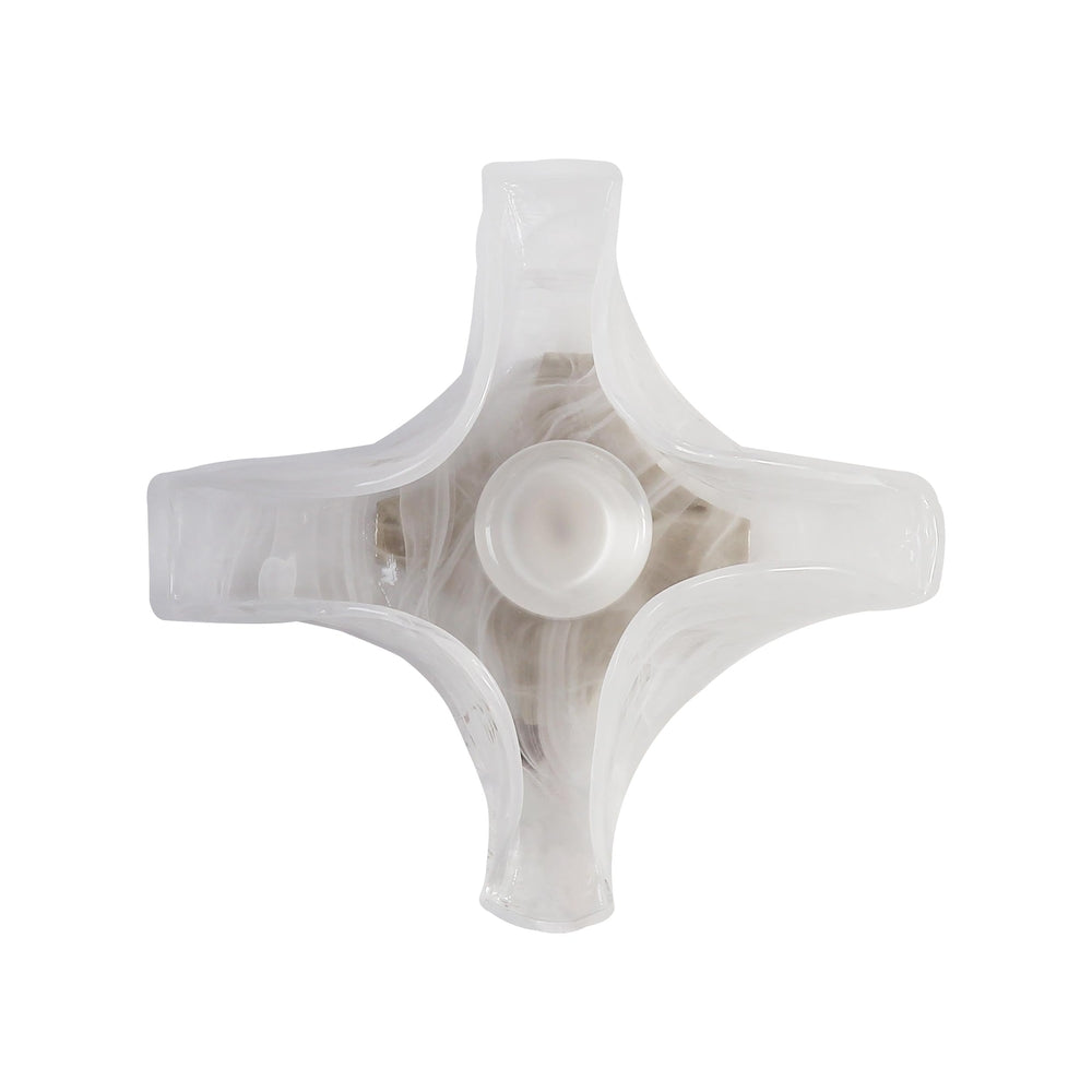 Immerse your space in the tranquil beauty of Glacier, a lighting fixture inspired by the ethereal charm of glacier ice. Handcrafted from piastra glass, each piece carries its own unique character while retaining a harmonious organic shape. The dreamy alabaster treatment creates a soft white cloud finish, evoking the serene elegance of natural ice formations. Every detail of Glacier speaks to its exceptional craftsmanship. Designed by Golden Lighting's in-house team and meticulously made by hand, this fixture is a testament to artistry and quality. Custom glass cuffs seamlessly cover the metal light cups, ensuring a polished and refined appearance, while the textured glass enhances its visual allure.