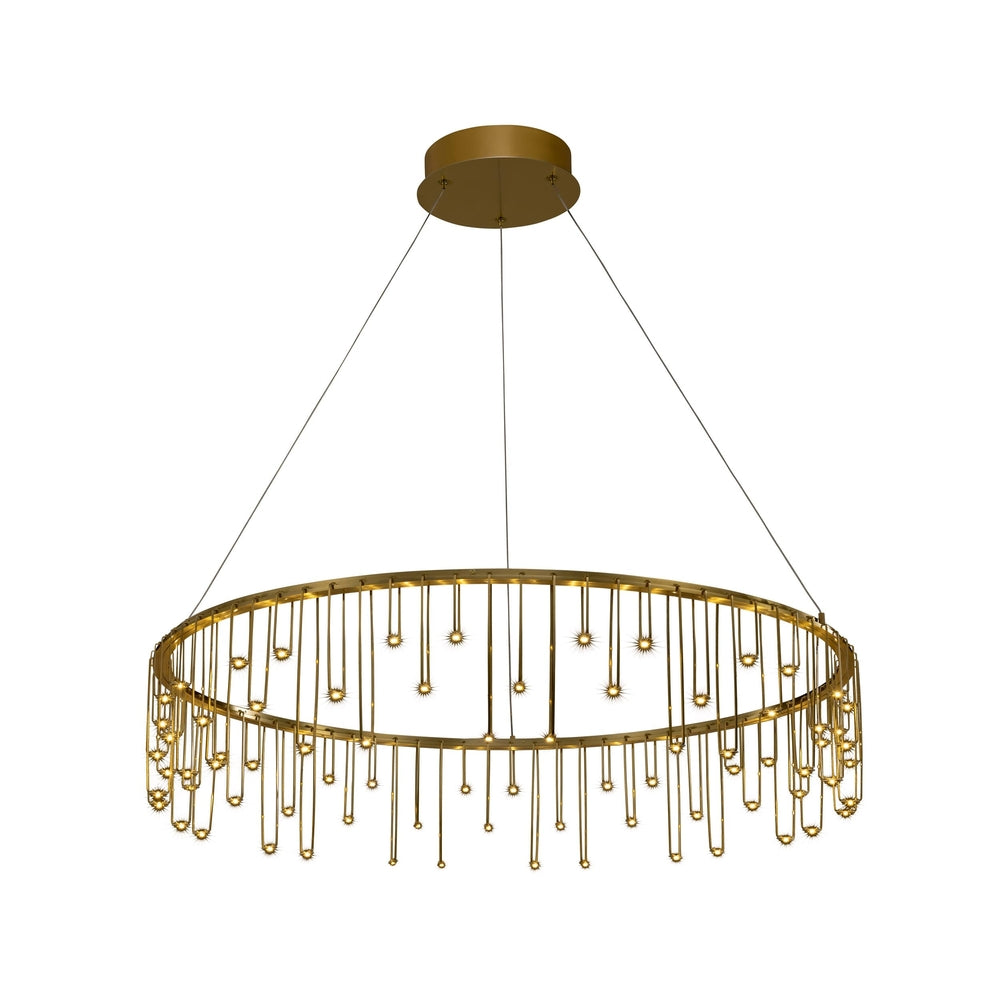Introducing Lucerna, a chandelier that redefines luxury and transforms any space into a breathtaking haven of elegance. With its gold-plated stainless-steel construction and three-tiered cascading design, Lucerna captivates the eye and inspires awe, drawing attention upward with a graceful visual flow that feels almost celestial. Adorned with delicate LED lights along each tiered rim, Lucerna bathes your space in a warm, golden glow, creating a sanctuary of sophistication and warmth. Its design mimics a burst of twinkling lights, casting a magical, sparkling ambiance that makes every moment feel extraordinary.