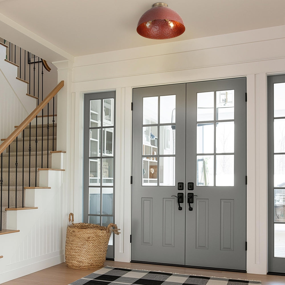 Make a modern statement with the boldly beautiful look of the Shepard Collection. The large dome metal shades are industrial-inspired and hammered to perfection. Witness the beauty of the texture from the inside and outside. The opaque shades are perfect for creating task light where needed. A warm, plated Modern Brass finish amplifies the contemporary look.