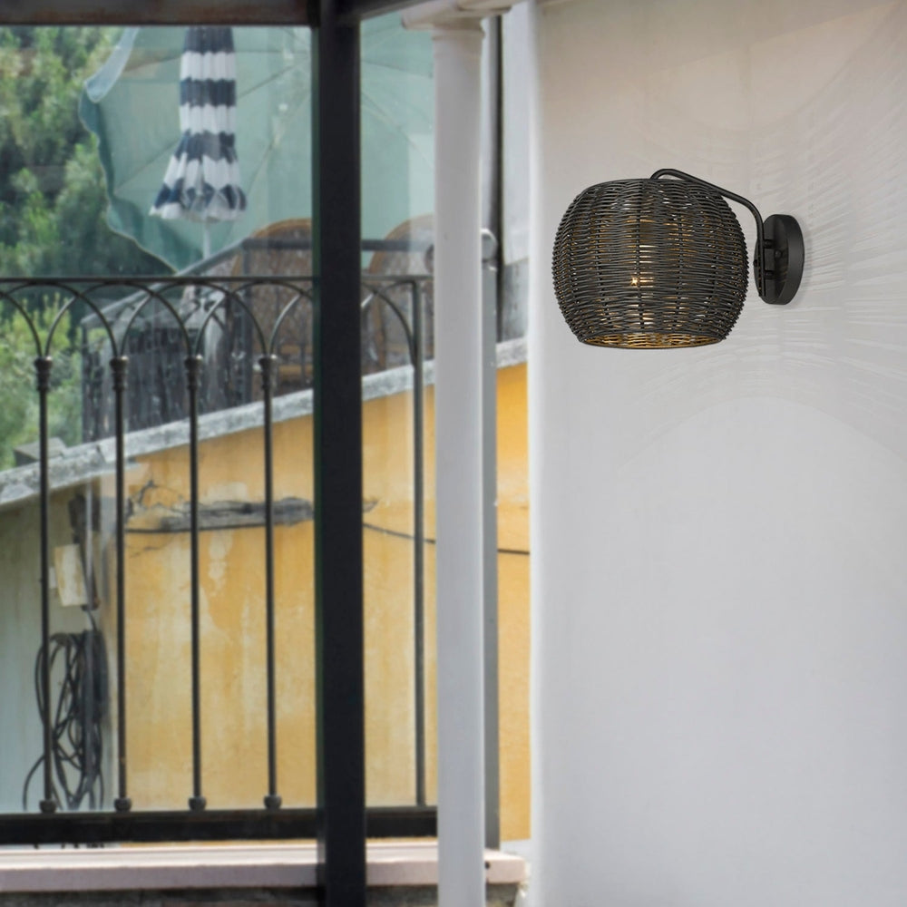 Natural materials and a dark finish make Vail a great addition to modern exteriors. Welcome guests with warmth and casual elegance. This wet-rated outdoor sconce features Black Rattan Wicker formed into a stylish drum. A circular glass shade sits behind the wicker shade encasing the lamp source. A protective UV coat ensures that the lightly textured Natural Black finish will look great for years to come. The modern look complements trending outdoor furniture options. Create the perfect outdoor space with this Contemporary fixture.