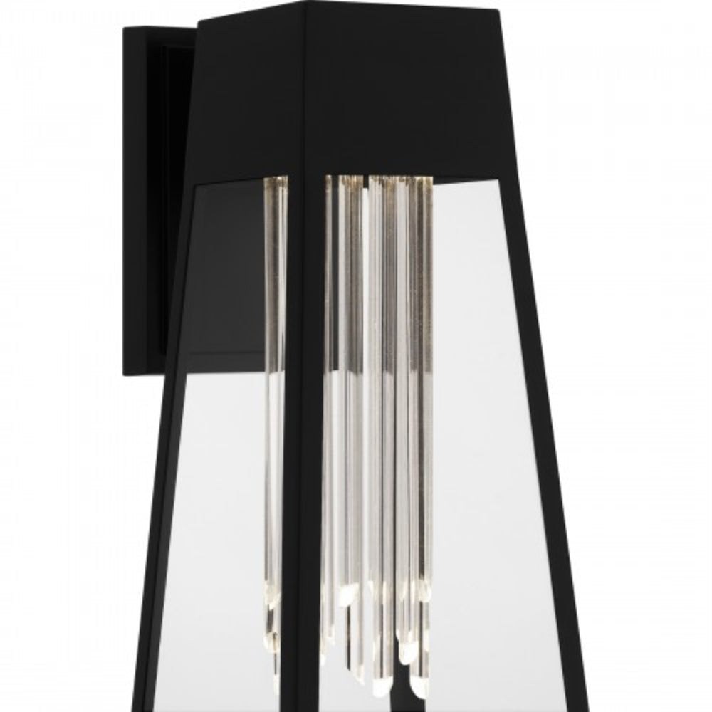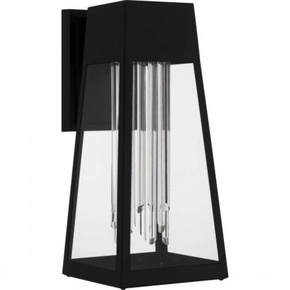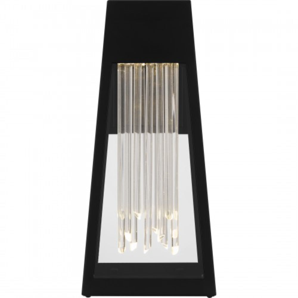 Guinn outdoor wall lanterns add a touch of contemporary luxury to your home's exterior. The sleek silhouette is finished in matte black and complemented by clear glass panels, allowing the integrated LED light source to shine brightly through the sparkling center column. Flank your front door with a pair of Guinn wall lights - or use as a porch light to create the perfect outdoor setting.