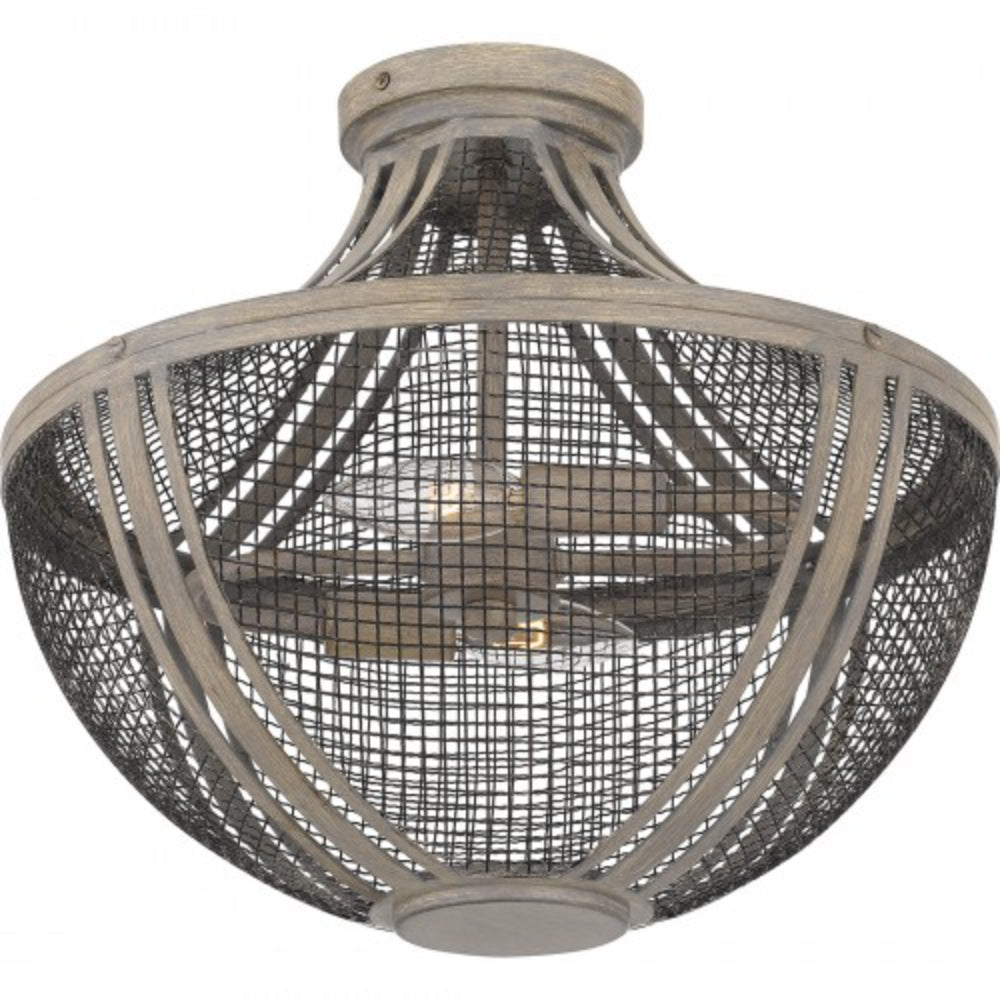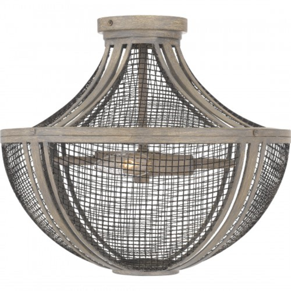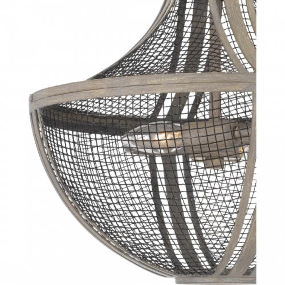 With a metal mesh shade and distressed grey wood finish, Hallie is the essence of global design. The grey wood frame has a slightly distressed finish, adding a modern farmhouse feel. Available in a semi-flush mount or pendant light, Hallie makes a cool statement in any foyer, hallway, living room, or home office.
