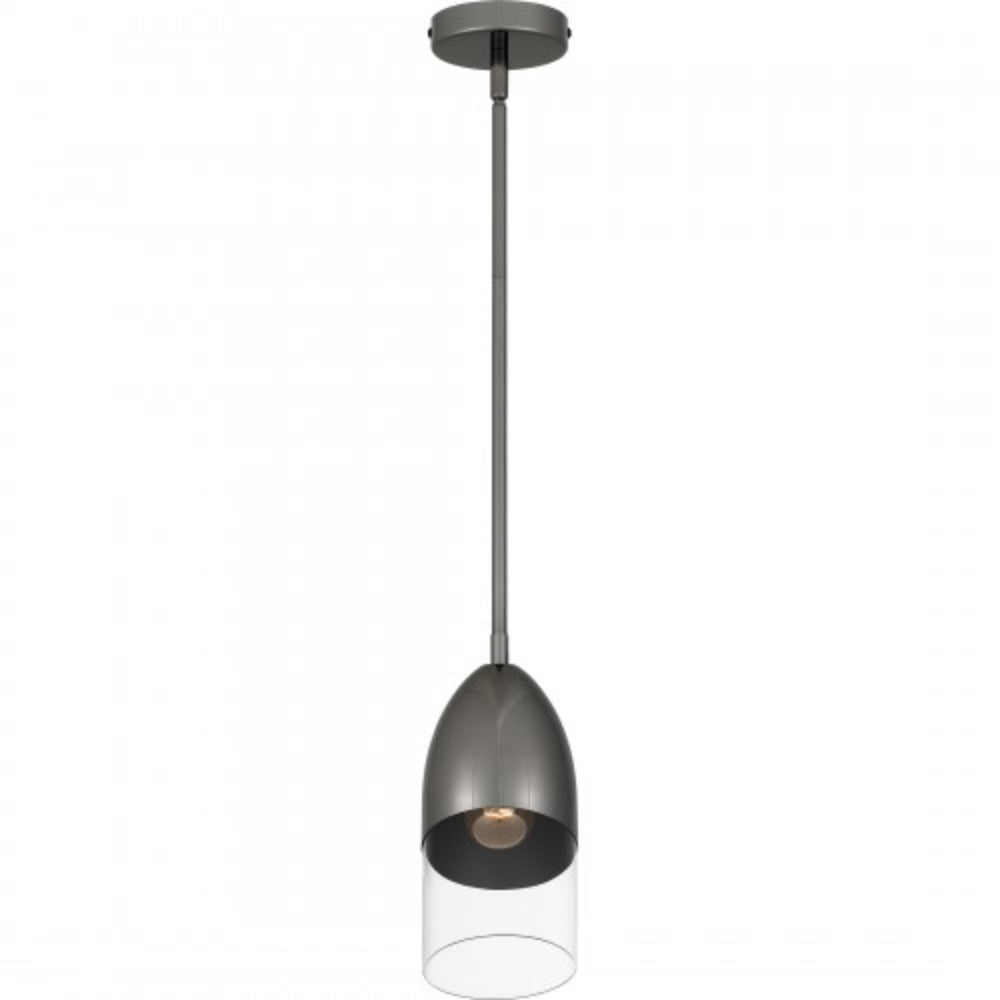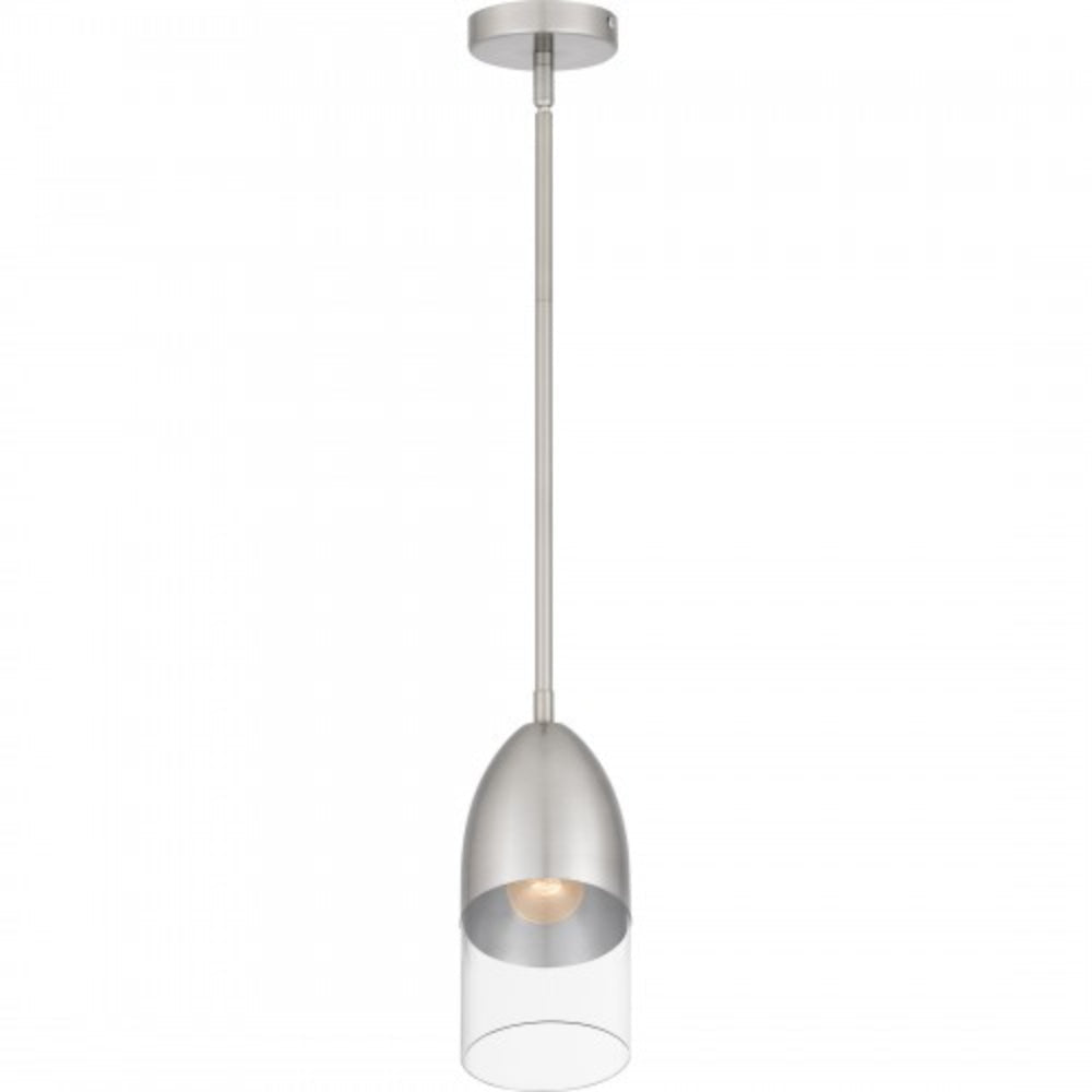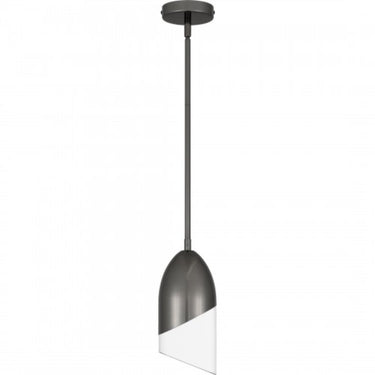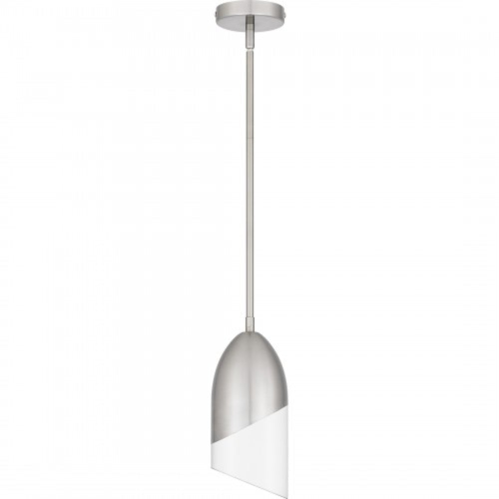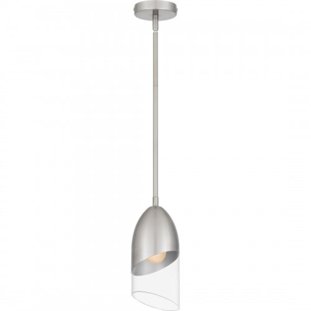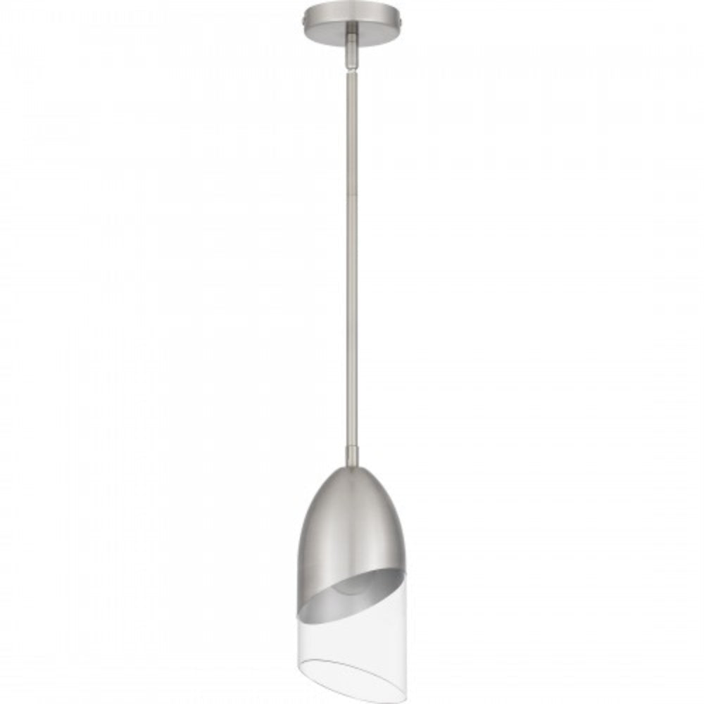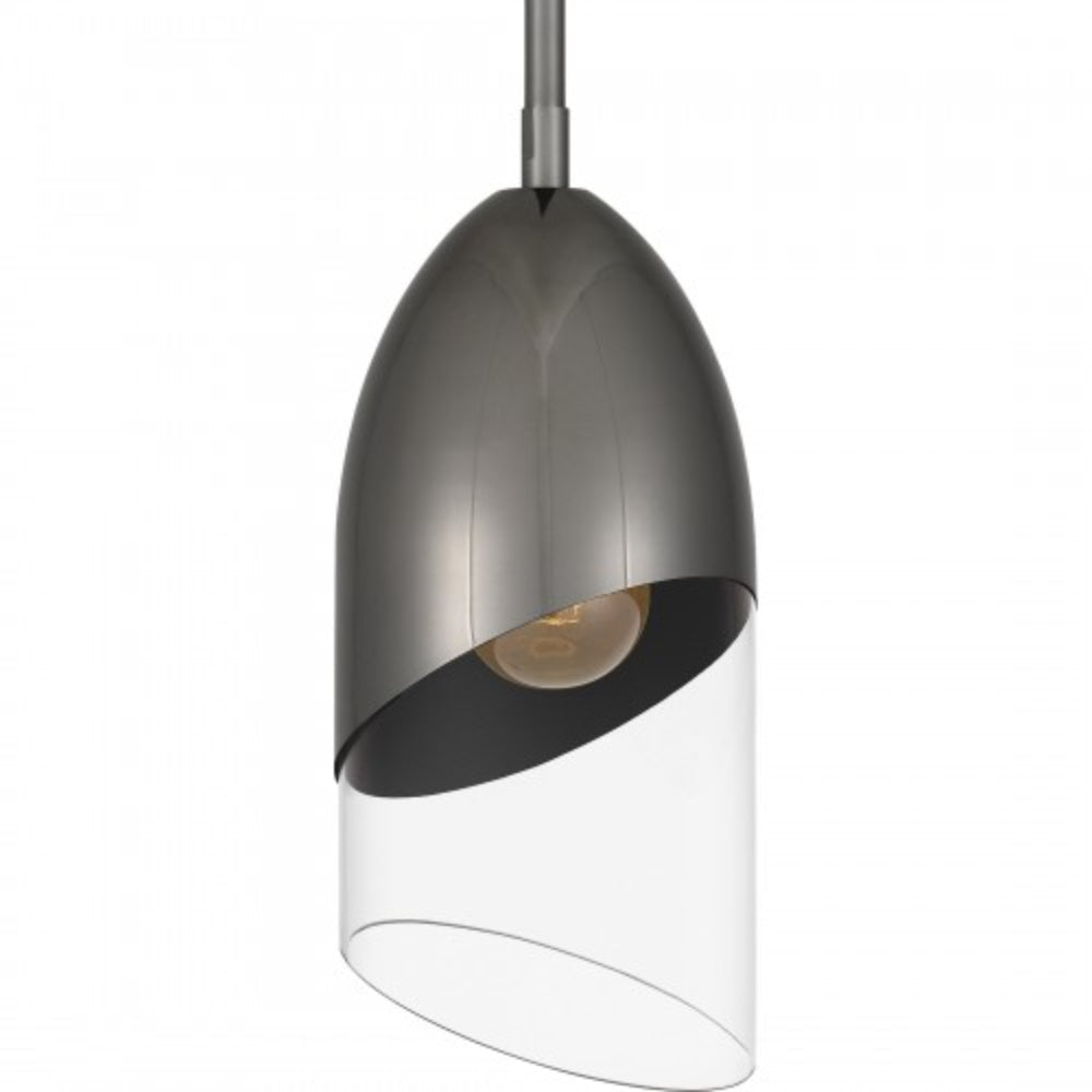 Hung alone or in pairs, Haynes mini pendant lights make a simple yet bold statement. Sharp, geometric lines in either a black chrome or brushed nickel finish offer a beautiful contrast to the clear glass shade. Part of the popular Platinum by Quoizel collection, Haynes is the perfect complement to modern or contemporary spaces.