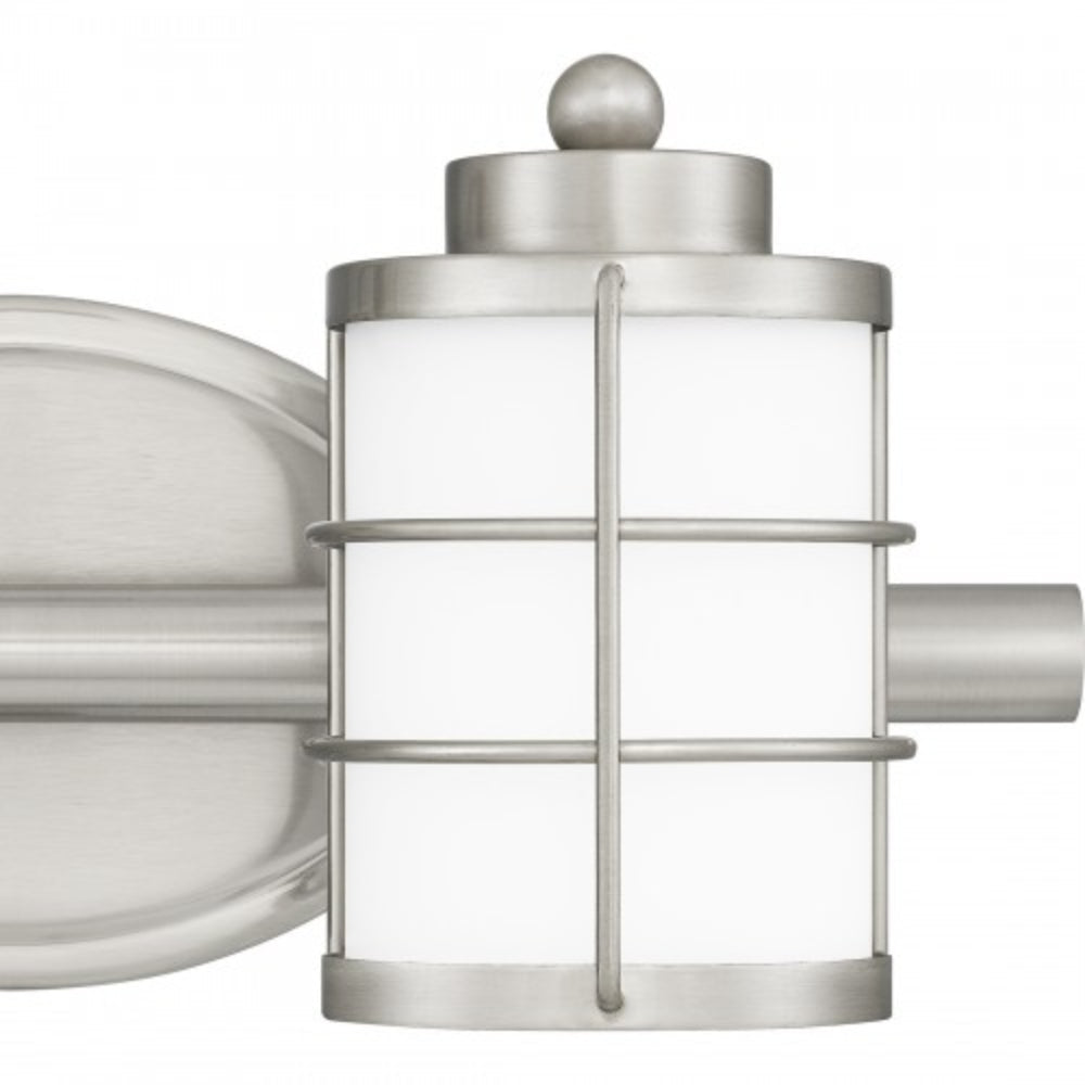 With a variety of size options and finishes to choose from, Hazlett is true perfection. Lustrous opal etched glass shades are highlighted by a sleek cage-like design, creating a soft and inviting glow. With its versatile silhouette and oval backplate, Hazlett is an ideal complement to industrtial and farmhouse bath designs. Arrange the vanity light facing upwards or downwards, depending on the unique needs of your space.