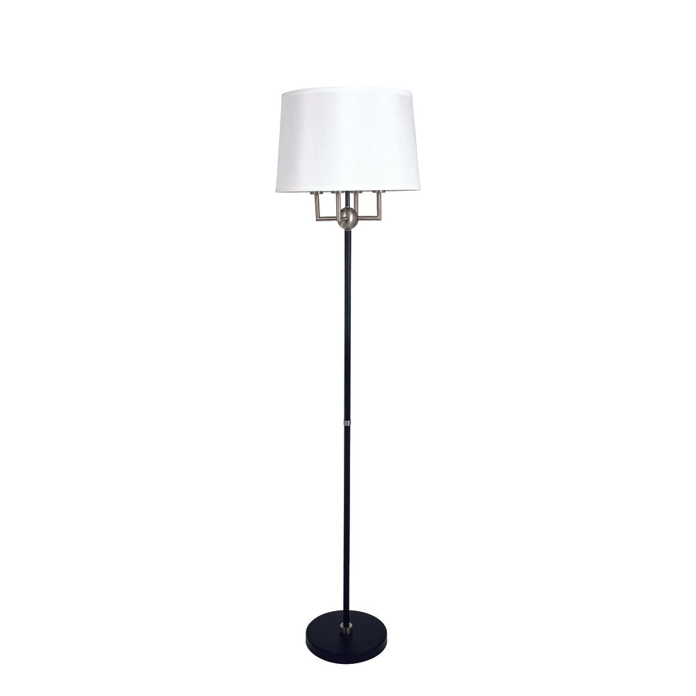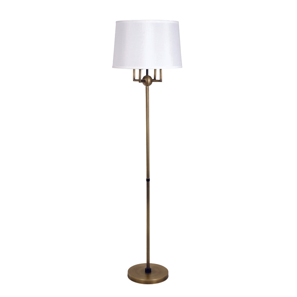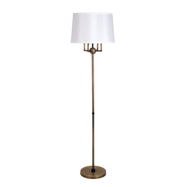 Alpine 4 light cluster antique brass/black floor lamp with white silk softback shade