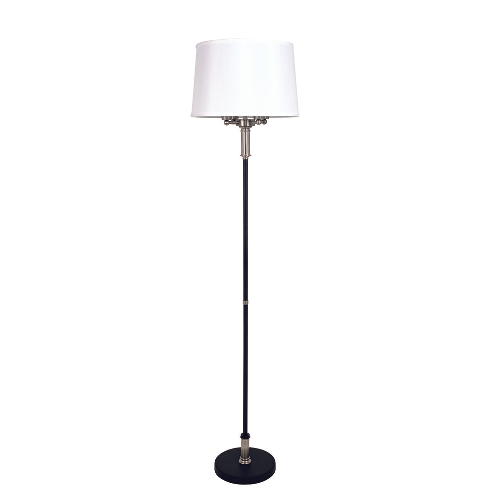 Alpine 4 light cluster antique brass/black floor lamp with white silk softback shade
