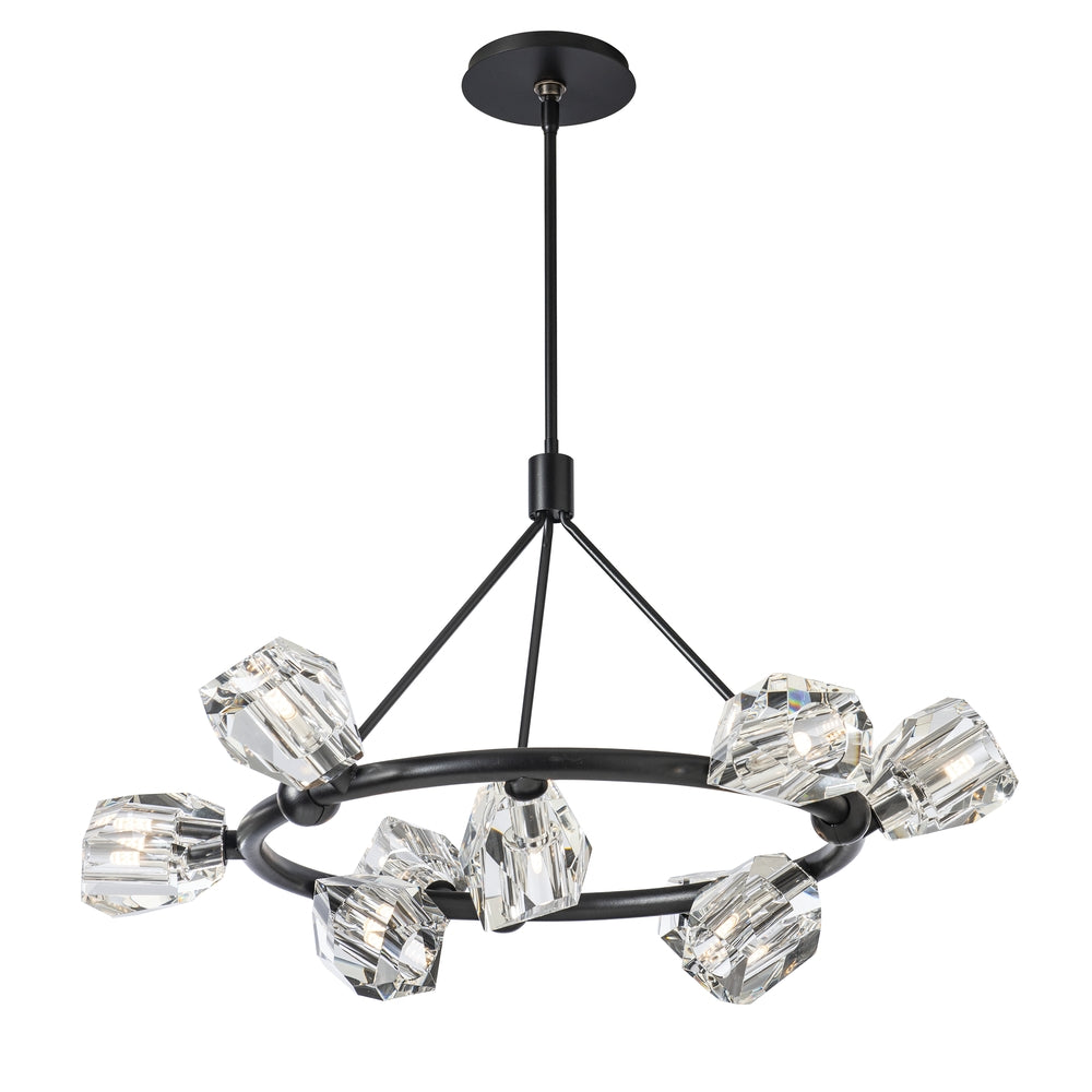 Like treasures, or stone turned to diamond, nine stunning faceted crystals are lit from within and directed upward and downward in a circular fashion with the Gatsby 9-Light Ring Pendant, providing luxurious lighting in any space.