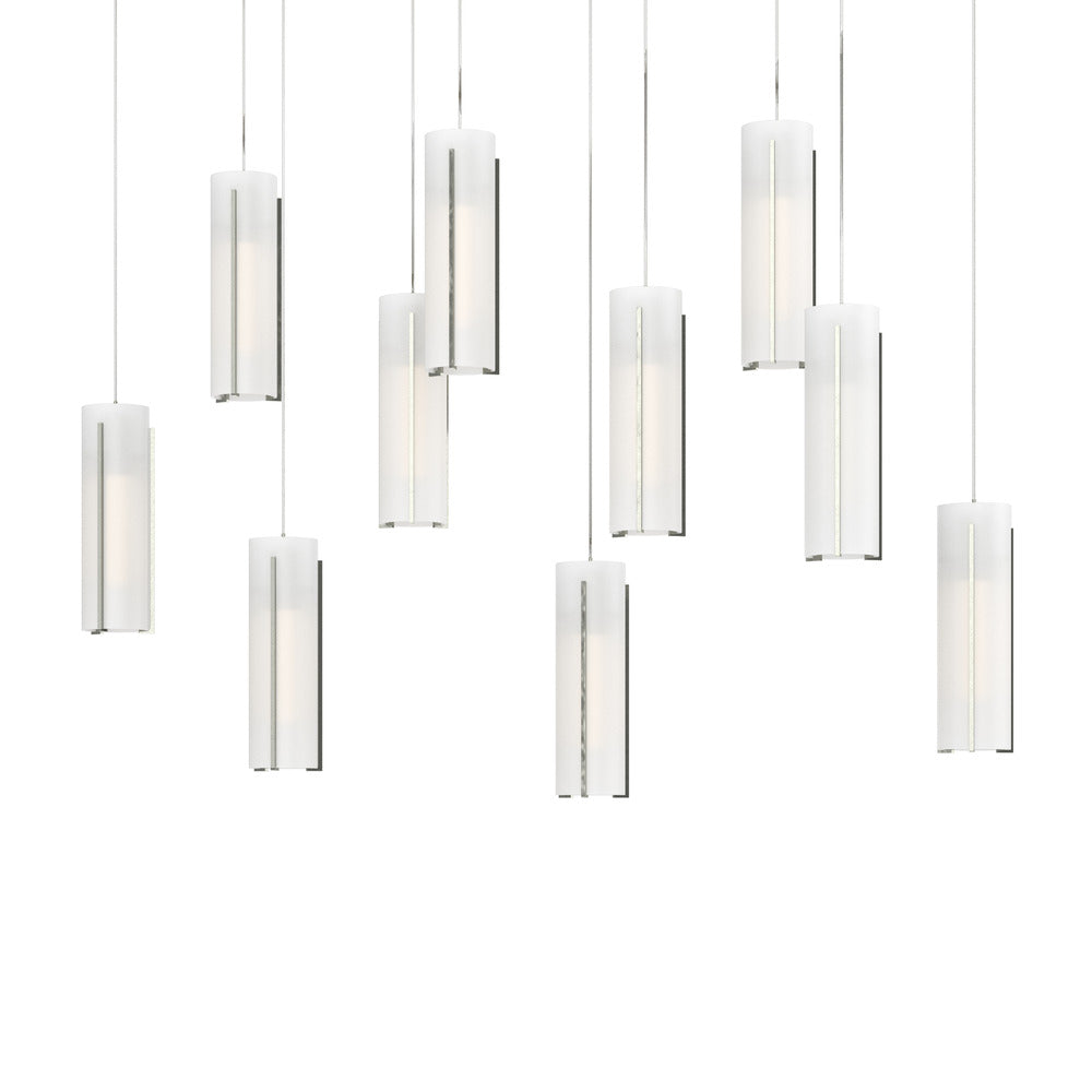 Multi-port suspension cluster pendant with ten low voltage pendants suspended from a single canopy. Choose a finish for the fixture and the canopy faceplate. The upper canopy can will always be black.