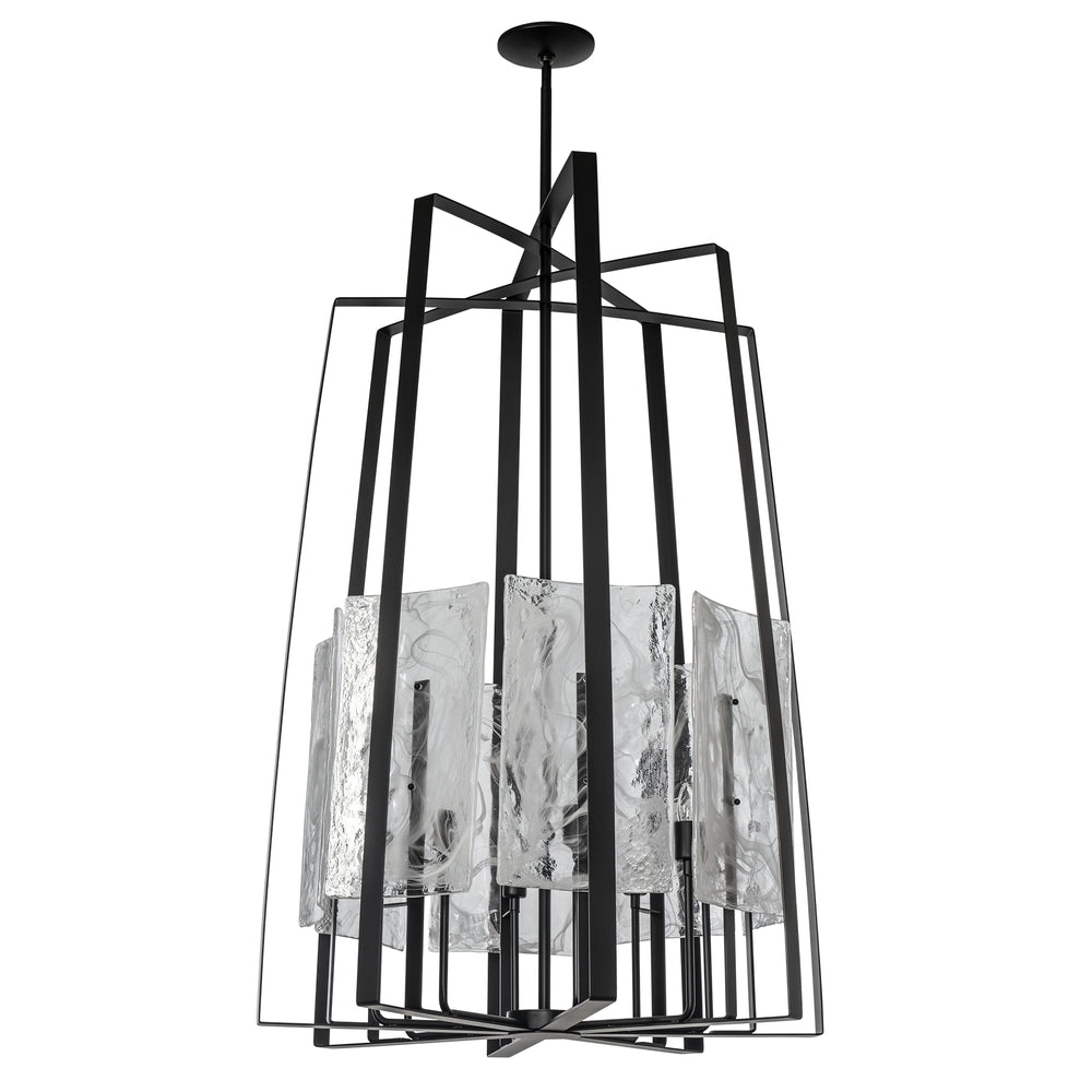 With its lantern nearly 4.5 ft tall and 3 ft wide, the Arc 8-Light Tall Pendant makes a statement. And, this pendant's easy-to-adjust Multi-Stem system with rods that can be configured to over 7 ft in length, this lighting makes any room "grand". The Arc's hallmark thick, hand poured, slightly convex glass panels with freeform white "swirls" have both depth and clarity, giving a contemporary twist to a traditional form.