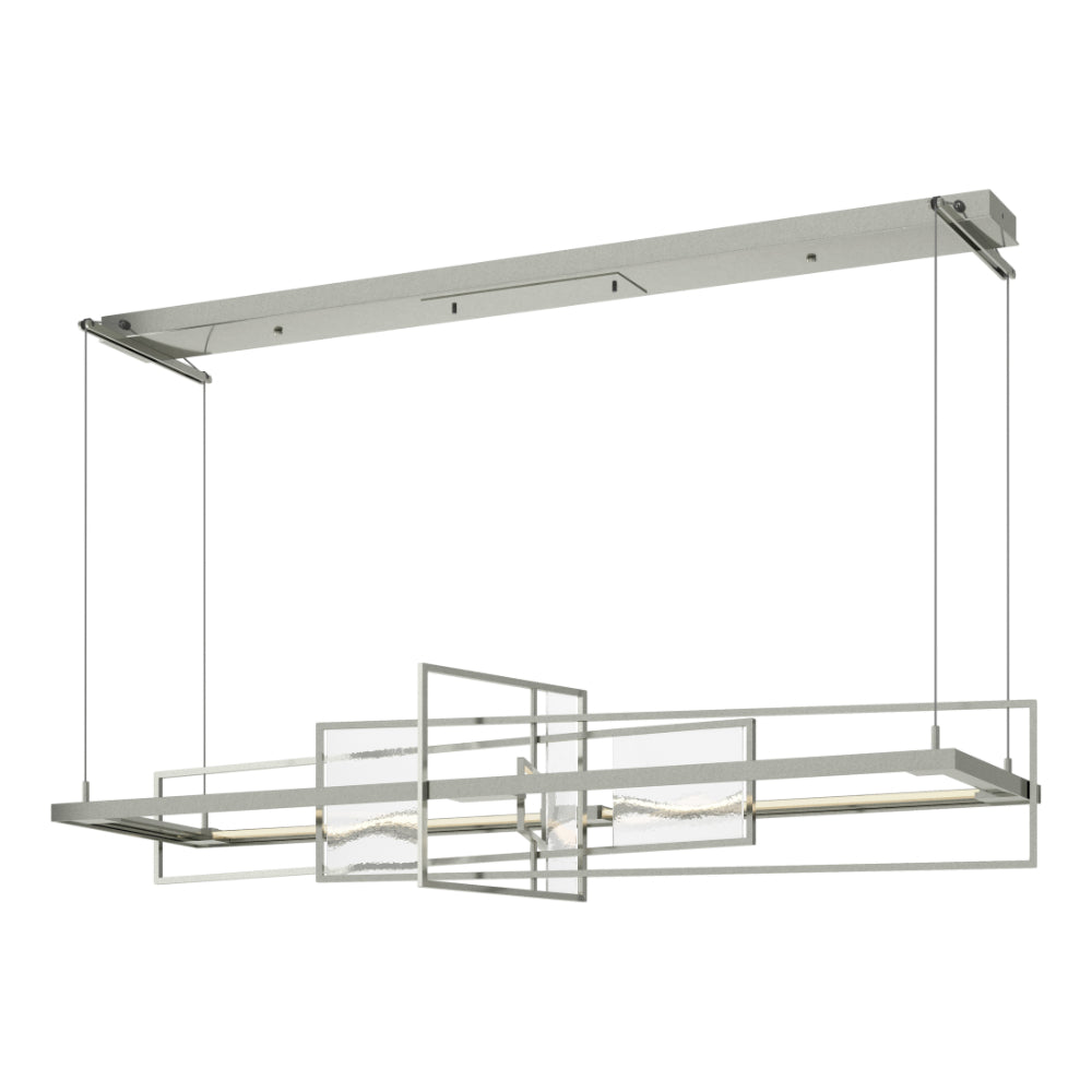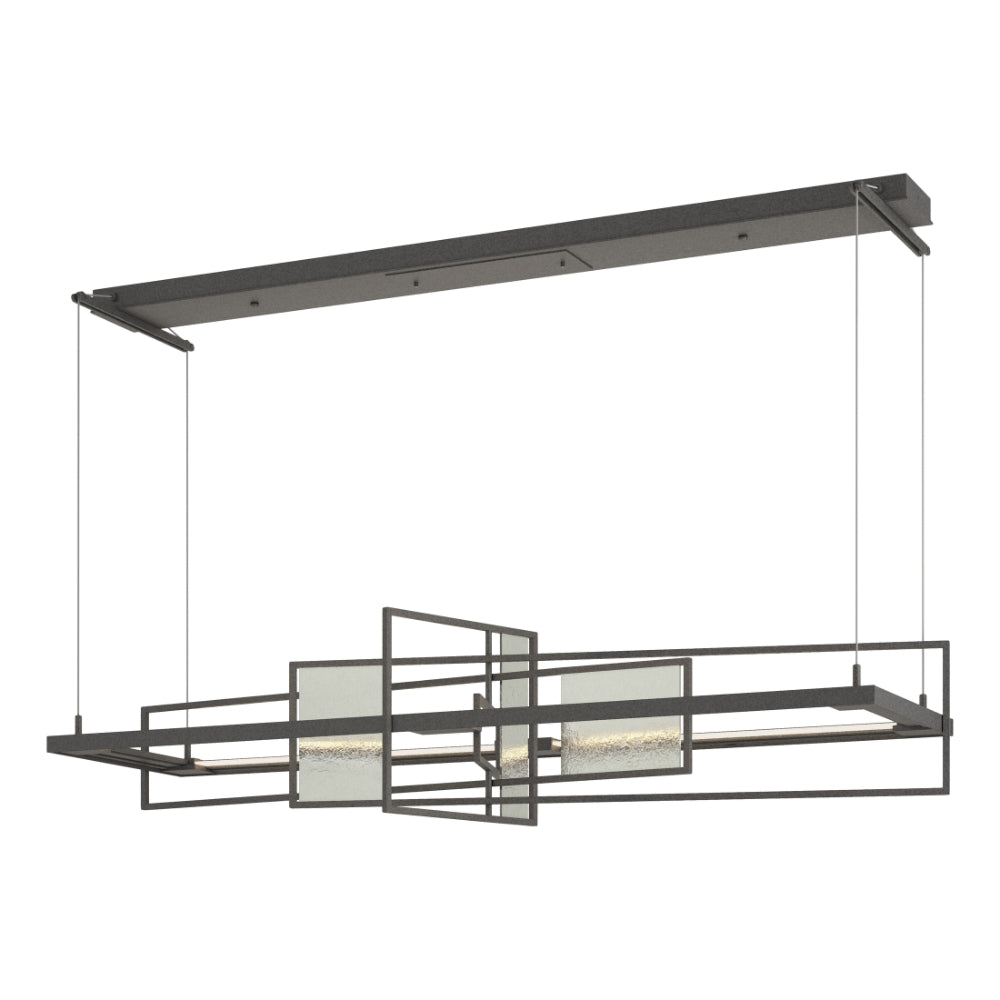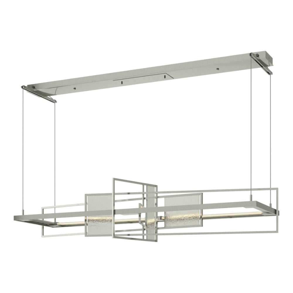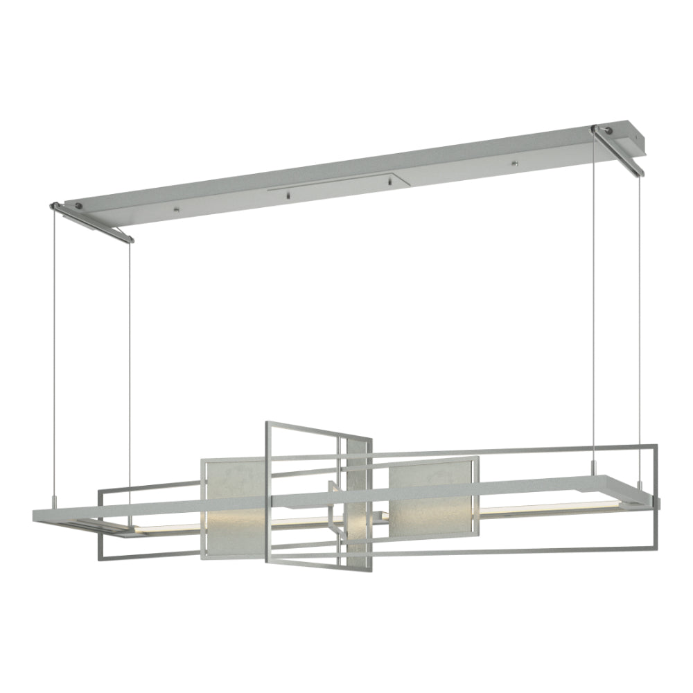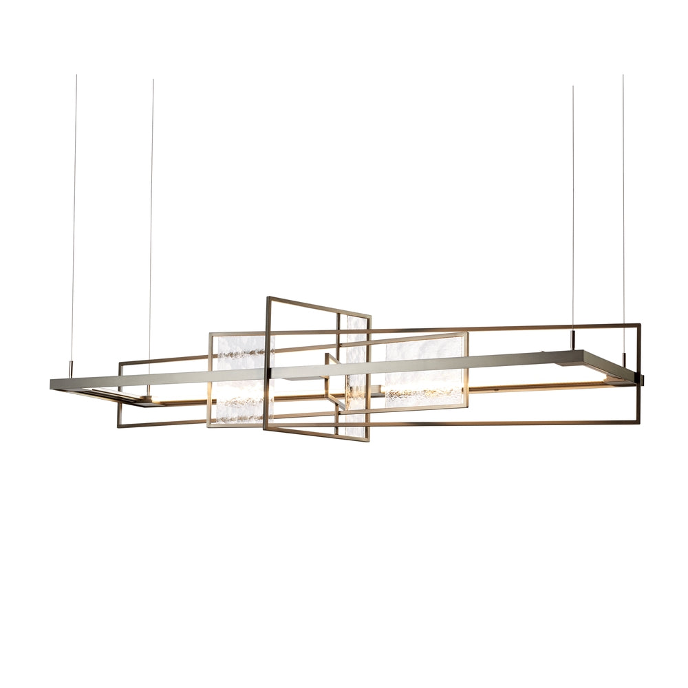 Large suspension LED pendant with choice of textured aluminum accent plates or textured glass accents. Revised slim canopy version replaces base item # 139753.
