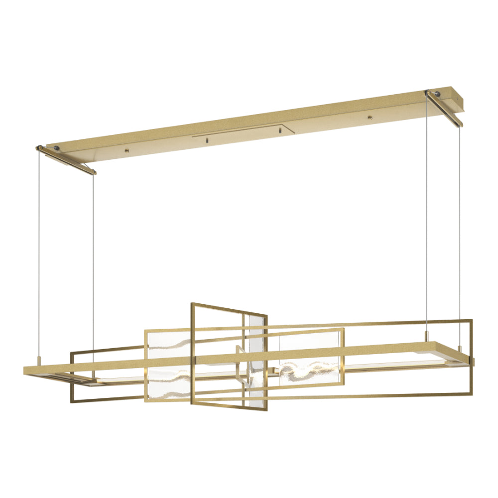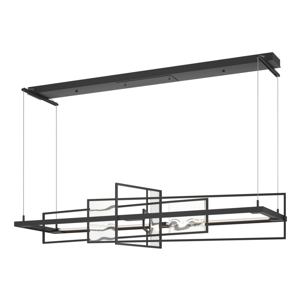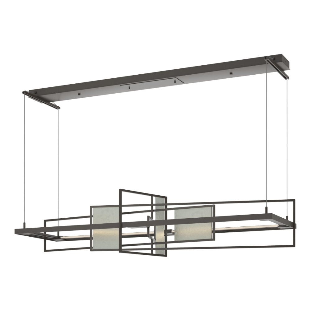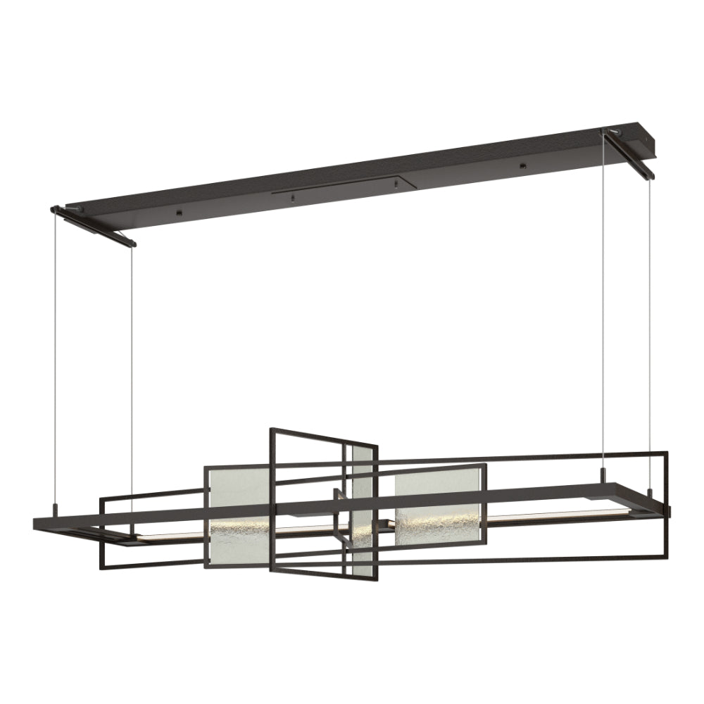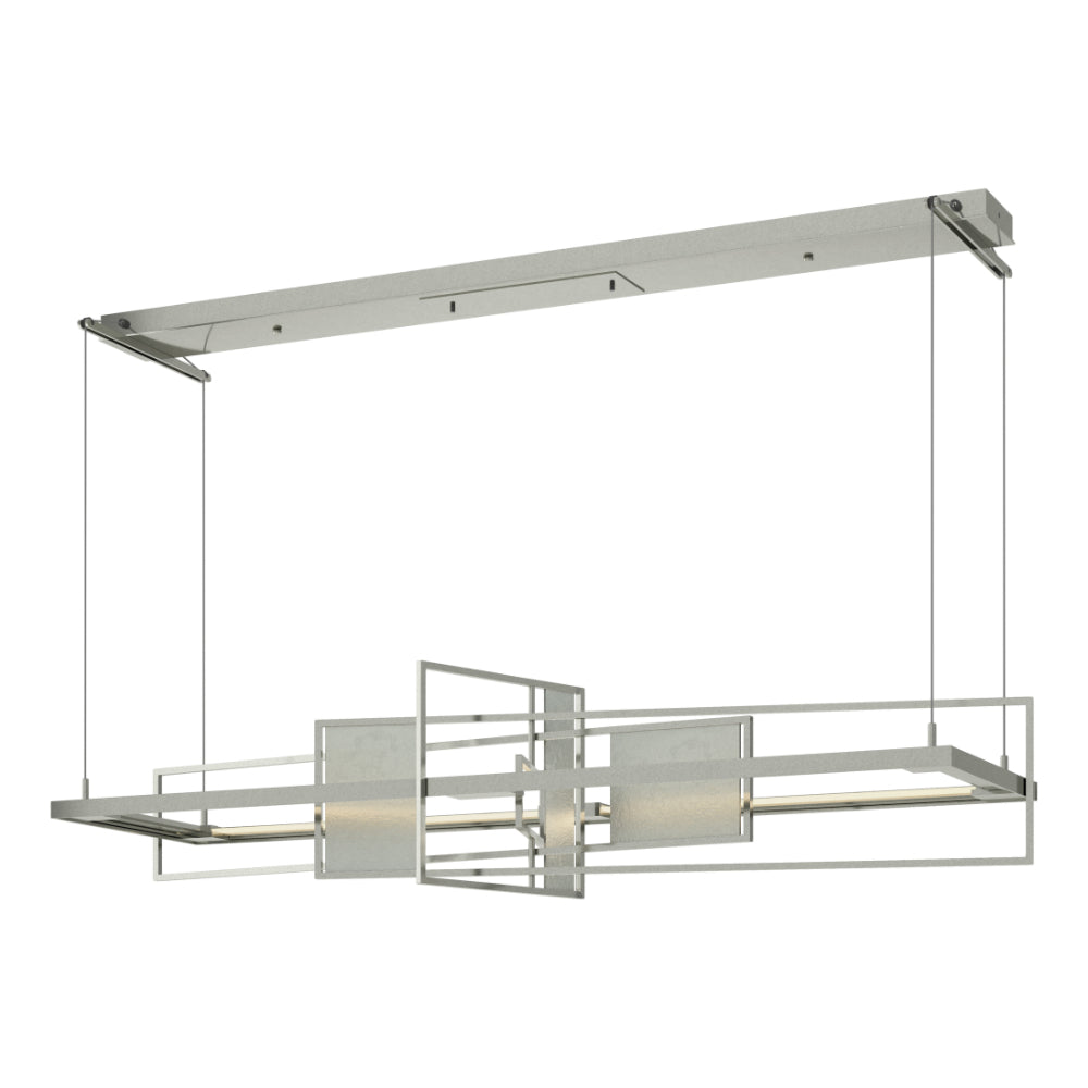 Large suspension LED pendant with choice of textured aluminum accent plates or textured glass accents. Revised slim canopy version replaces base item # 139753.