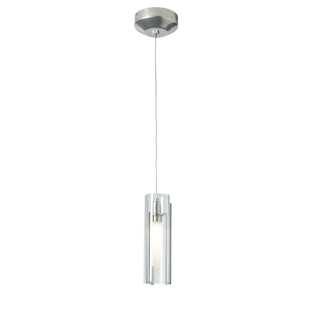 Adjustable-height cable-hung single pendant light with a glass shade and finish options.