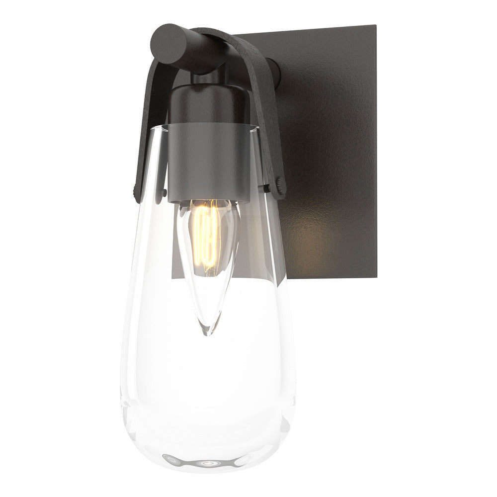 One light bath sconce with a clear glass shade.