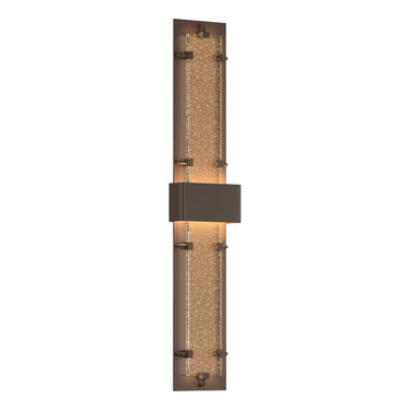 Large direct wire exterior LED wall sconce with seeded glass. ADA compliant.