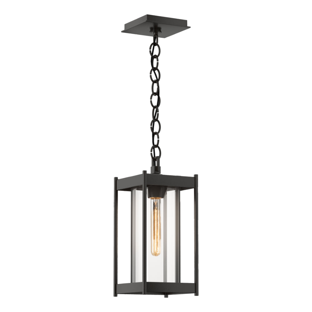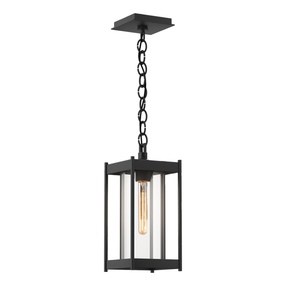 The Cela Outdoor Lantern is a contemporary pendant design that will add a touch of elegance to any space. The strong rectilinear lines of the aluminum frame hold a well-proportioned cylinder of blown glass. This chain-hung ceiling pendant is perfect for outdoor spaces and is offered in any of six Coastal Outdoor Finishes.