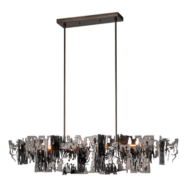 Brutus Pendant is a statement piece that will make a bold and aggressive statement in any space. The Brutalism movement of the '60s and '70s is revisited with this pendant design. Welded layers of steel are combined to create a unique, one-of-a-kind lighting fixture.