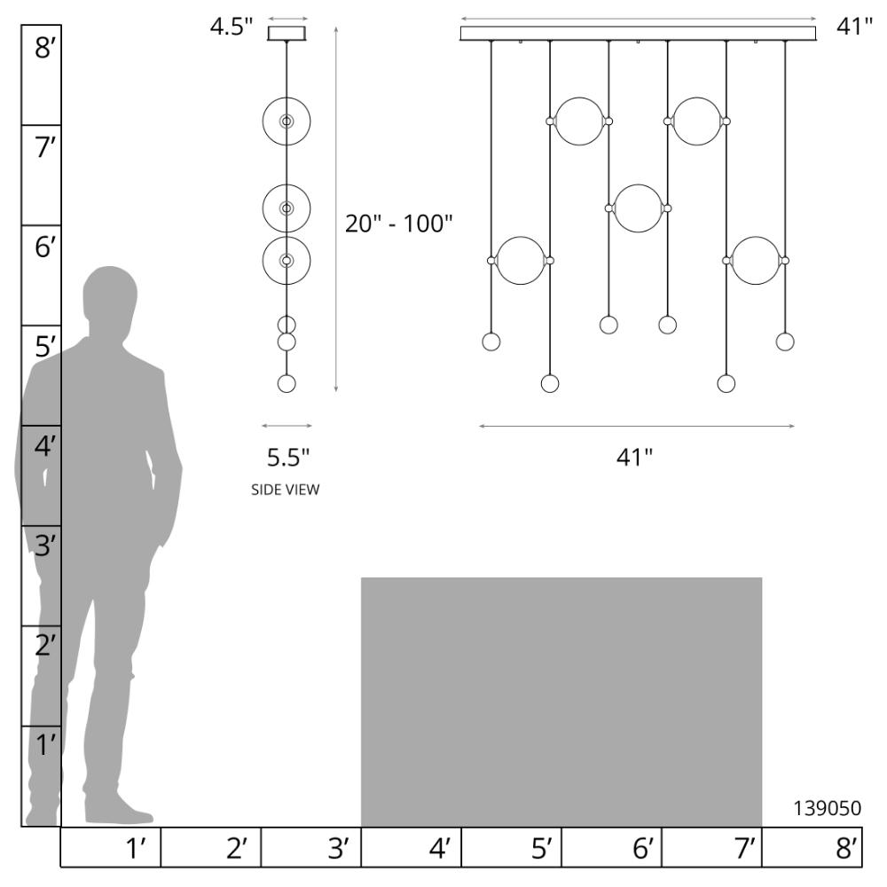 True to its namesake, the Abacus 5-Light Pendant features five blown glass globes that move up and down their low-voltage cable "rails" by virtue of tiny grippers on each side, that when squeezed, free the globe to slide and stop, exactly where you want to position it.