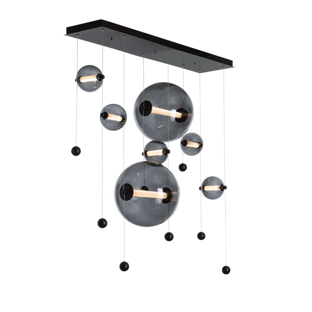An addition to the award-winning Abacus Collection, this Abacus Double Linear LED Pendant features 7 glass globes of large and small sizes in a linear format, versatile enough to hang over a bar or island, dining table or wall as an art installation, or any other space demanding a linear installation with some depth.