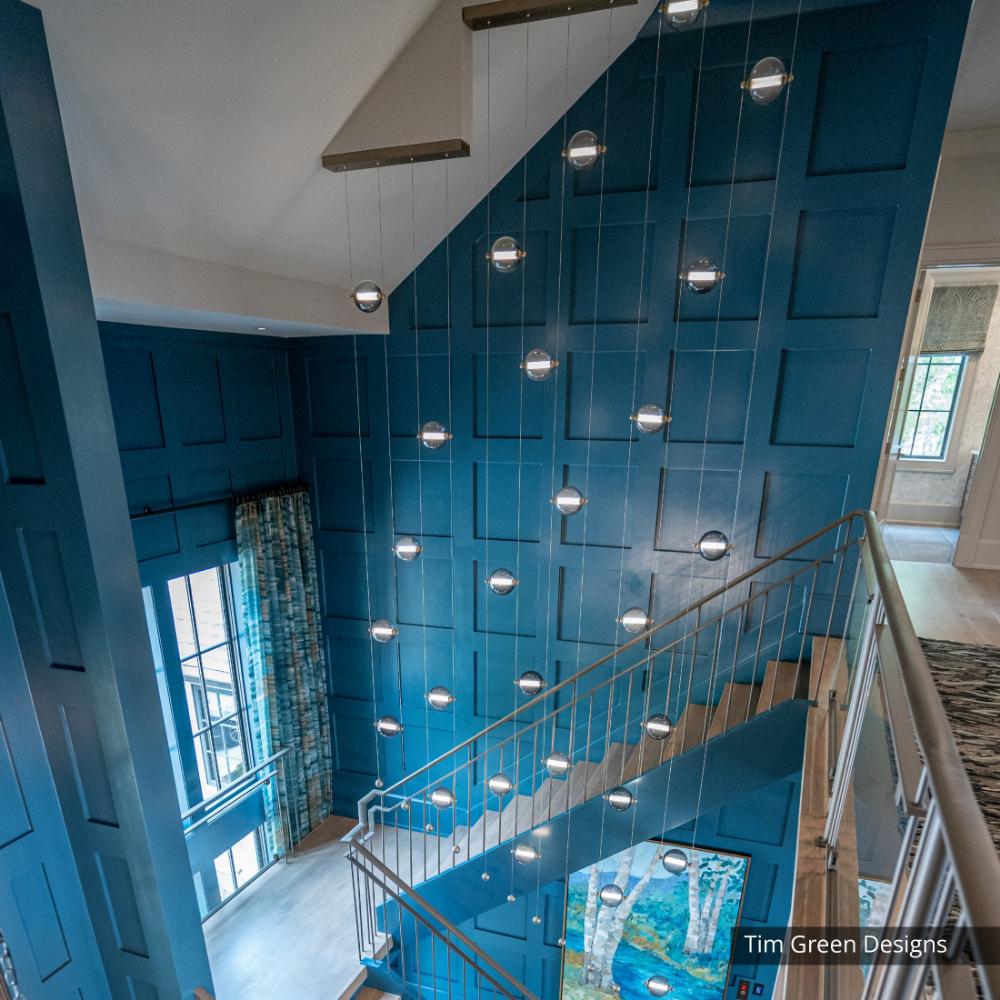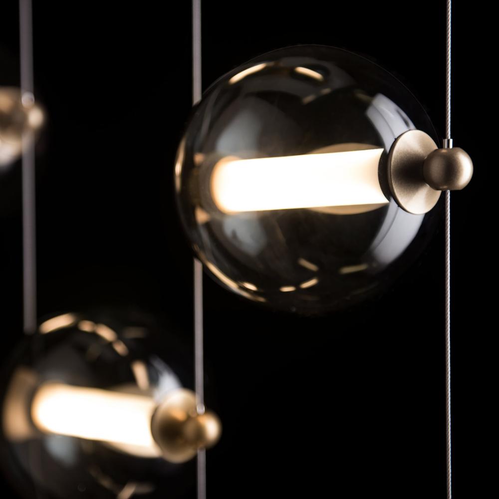 Looking for a room divider, or just a whimsical feature by a headboard or at the entryway? The Abacus 9-Light LED Pendant provides both light and experiential art. True to its namesake, the Abacus can be customized by moving any of the nine blown glass globes up or down its low-voltage cable "rail", by virtue of tiny grippers on each side that when squeezed, free the globe to slide and stop, exactly where you want to position it. Small steel balls anchor each cable.