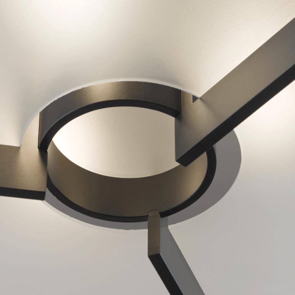 If you need to pull a room's design together, our Axis Semi-Flush will help you find your center. Three handcrafted steel arms radiate out from the middle and make a right angle to hold the glass. The contrast of steel against glass adds a dash of sophistication.