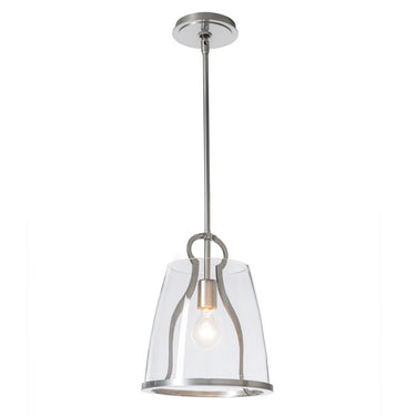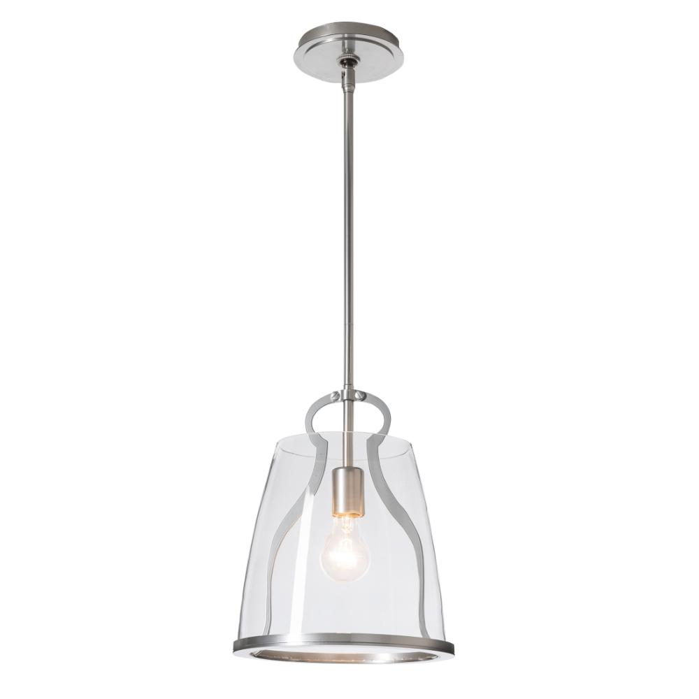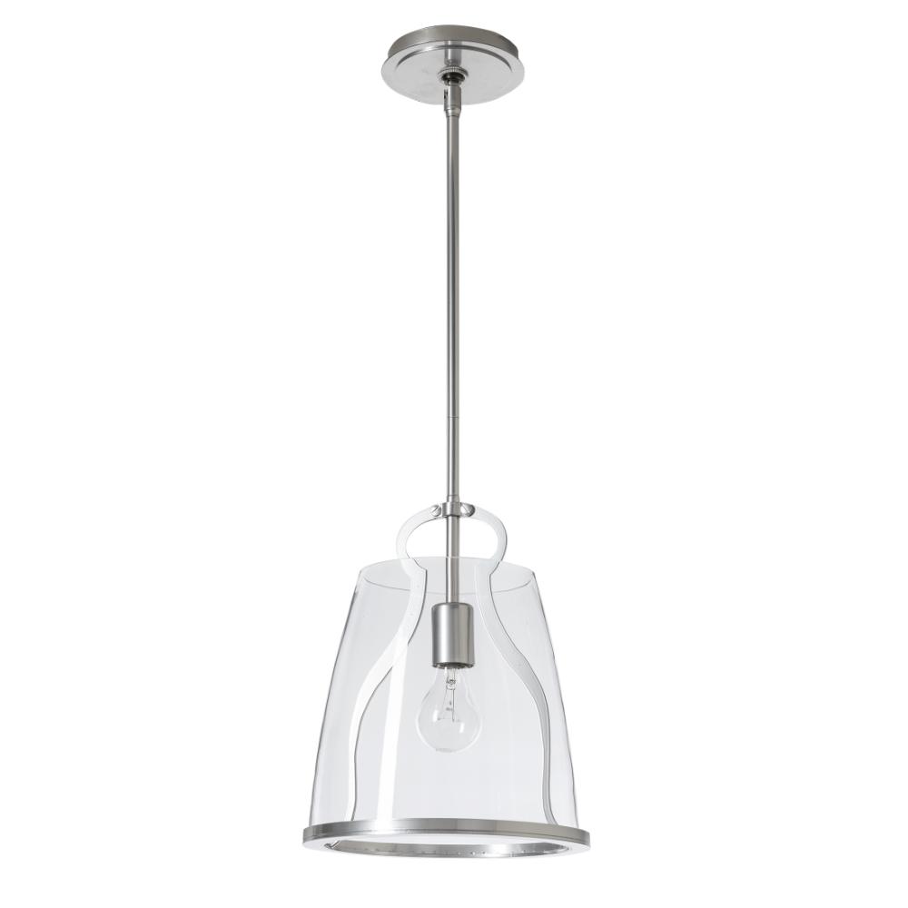 The perfect kitchen lantern, in addition to providing functional lighting, the Caliper Pendant is a conversation piece. Reminiscent of an antique tool within, the Caliper's large glass shade is supported by this "tool" and lower metal rim. Offered in two glass options, Clear or Plated Smoke for a more dramatic look. Available in all standard finishes.
