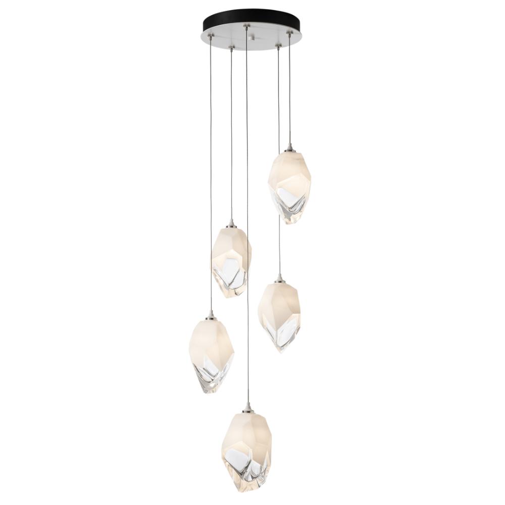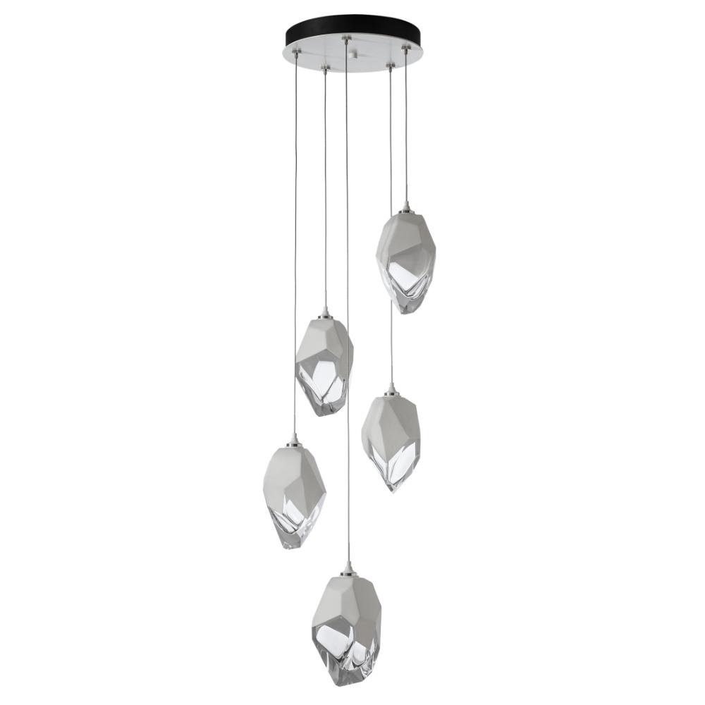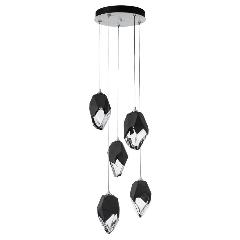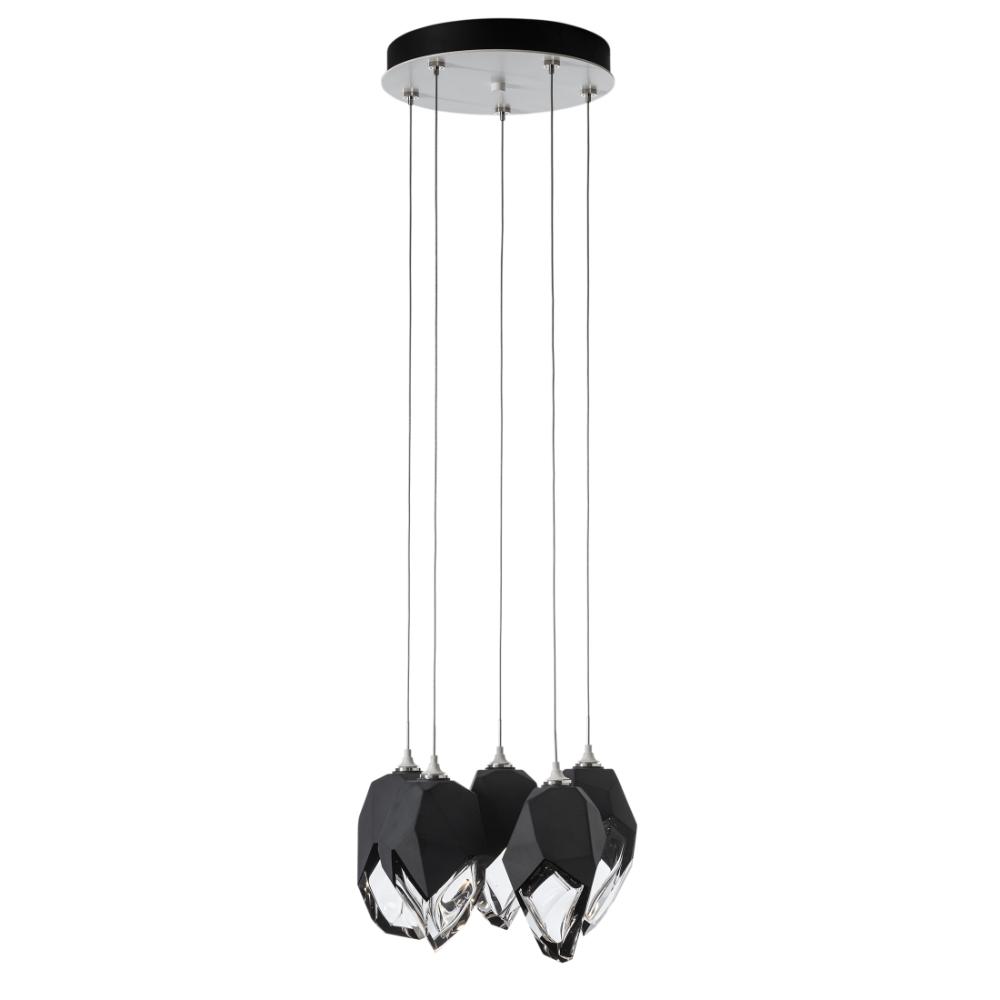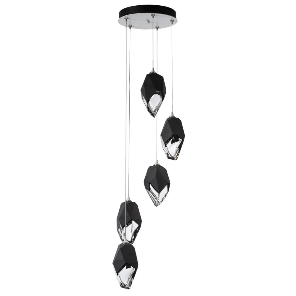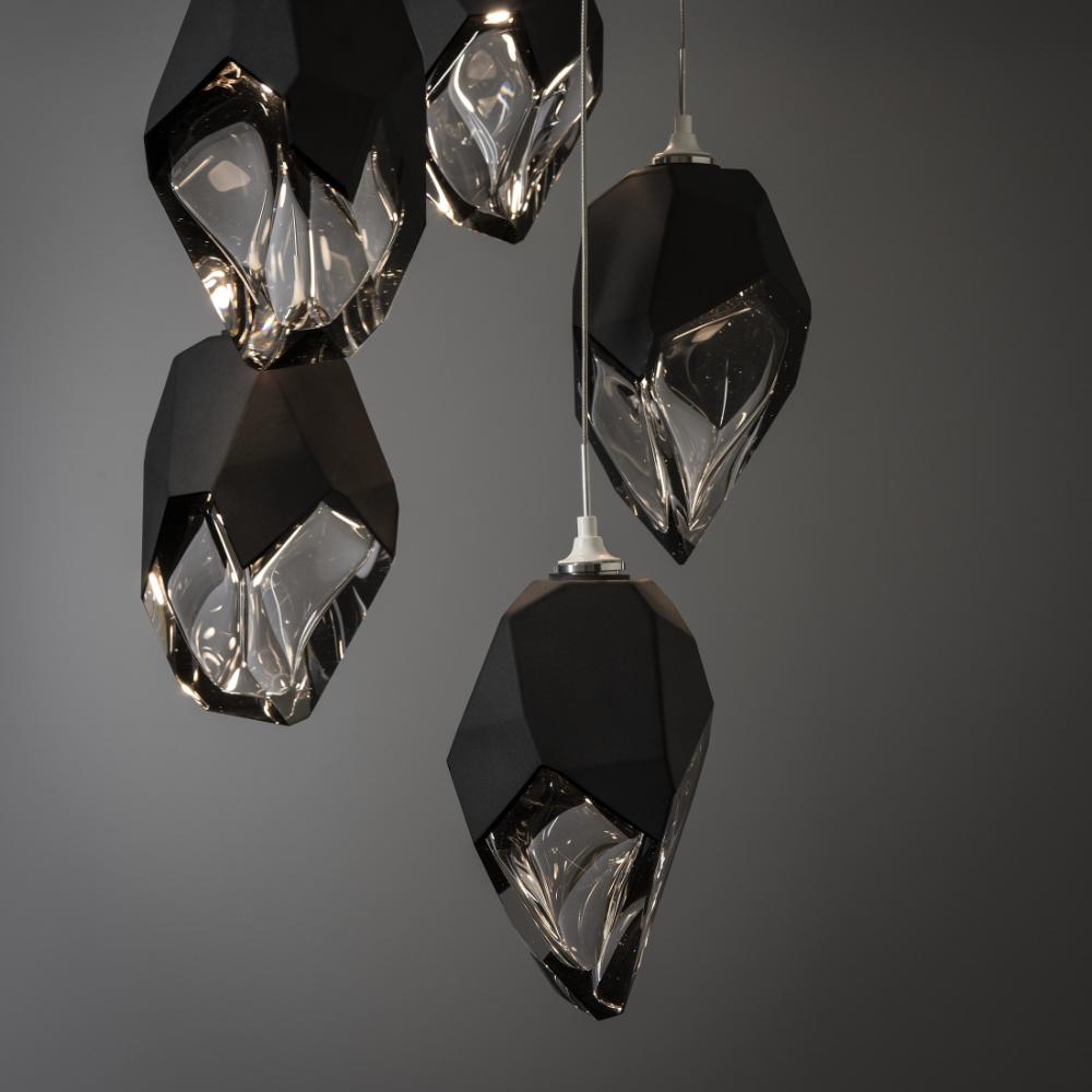 Five Large Chrysalis pendants hung from a circular canopy. Each pendant may be individually adjusted for a custom look. Note, the upper canopy can will always be black while the canopy faceplate will match the selected finish. Can also be used as a semi-flush ceiling fixture.- Sloped Ceiling: Adaptable to 45 degrees