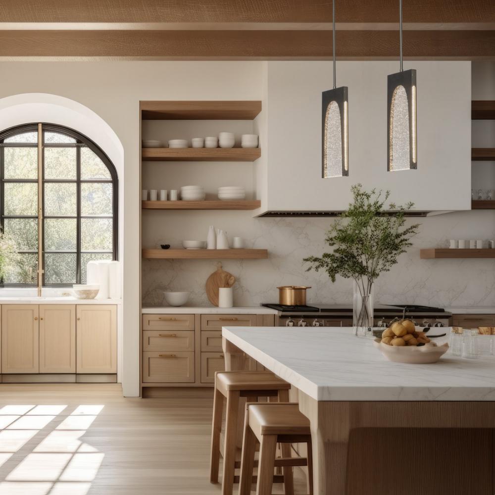 When you look at the Cypress 1-Light Pendant, you immediately see its clean lines and classic architectural references of aqueduct and arches. According to Designer Paul Marr Hilliard, "Its substantial seeded glass acts as a monolith of light in contrast with its rough inner steel edges that appear to sparkle when lit." The unique clear seeded glass varies with no two panels being identical.