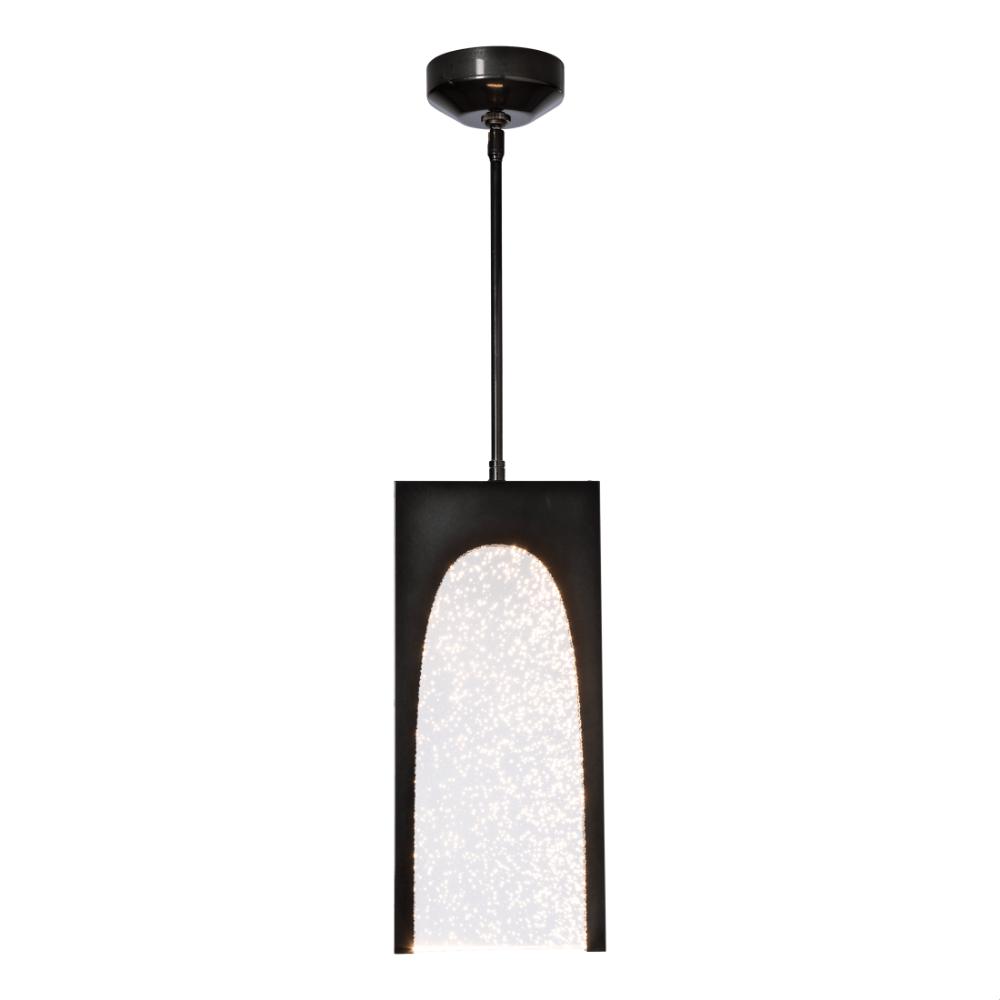 Contemporary LED mini pendant with a seeded glass panel. Note: The seeded glass panels will feature variability from piece to piece with no two pieces being identical.- Sloped Ceiling: Adaptable to 45 degrees