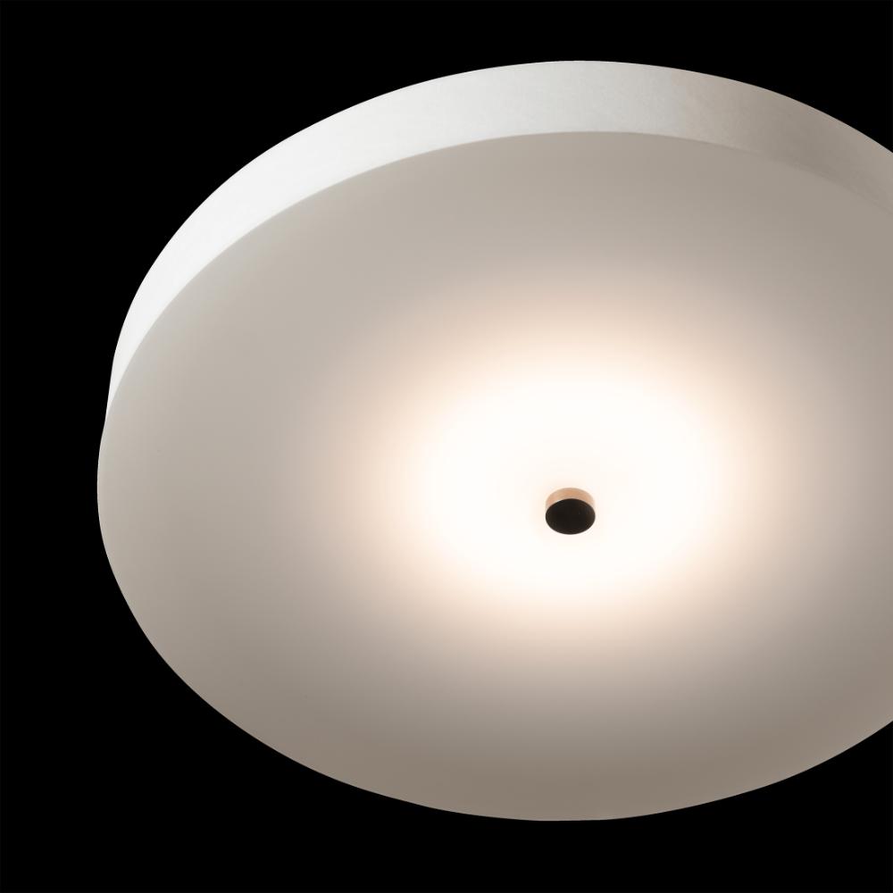 This large, sleek, contemporary, semi-flush ceiling light features a trimless drum shade and triac dimmable dedicated LED light sources. Created by our artisans here in Vermont, each fixture is finely crafted.