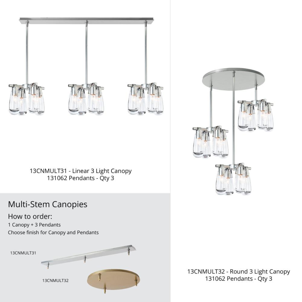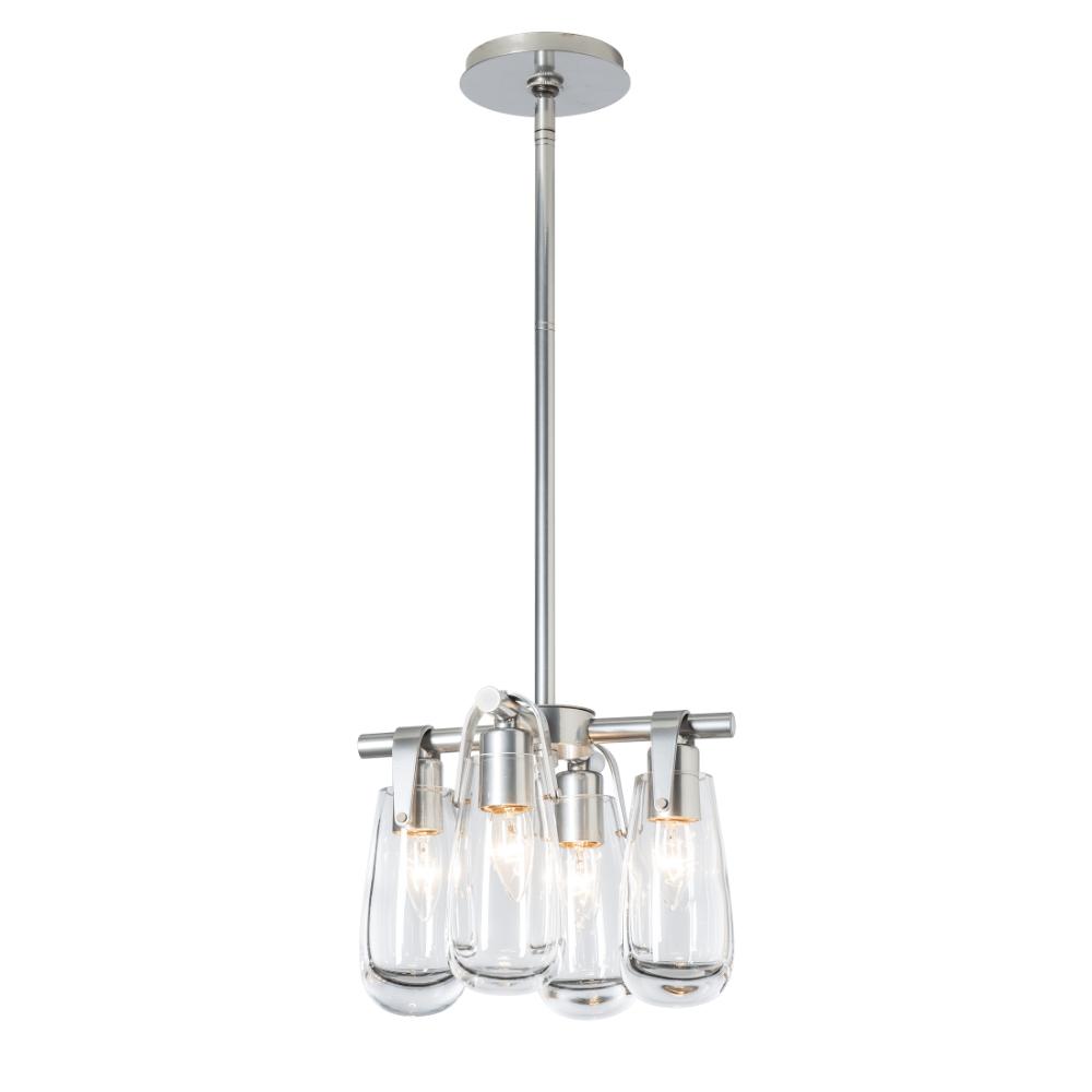 Four light pendant with clear glass shades. Suitable for installation as both a pendant or a semi-flush. Features a multi-height stem kit featuring three 12" stems, one 6" stem and one 3" stem which may be combined interchangeably to customize the overall height.- Sloped Ceiling: Adaptable to 45 degrees