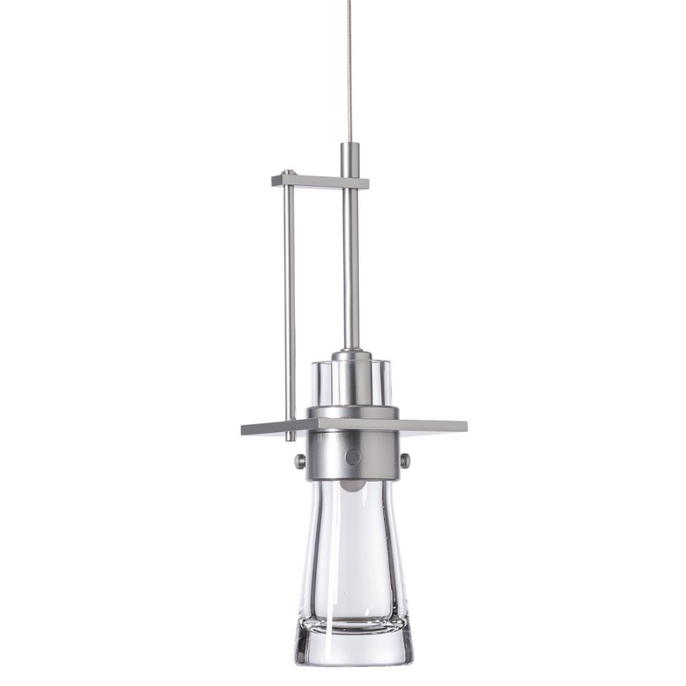 Adjustable aluminum low-voltage mini pendant with a thick blown glass cone shade.- Patent