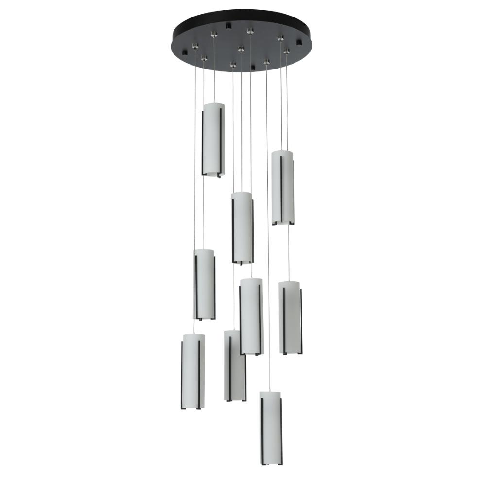Multi-port suspension cluster pendant with nine low voltage pendants suspended from a single canopy. Choose a finish for the fixture and the canopy faceplate. The upper canopy can will always be black.- Sloped Ceiling: Adaptable to 45 degrees (cable)