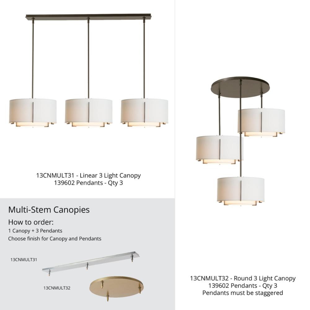 Double drum shade pendant light with shade. Includes a bottom diffuser. Includes a multi-height stem kit with three 12" pipes, one 6" pipe and one 3" pipe. The interior shade will always be Natural Anna.- Sloped Ceiling: Adaptable to 45 degrees