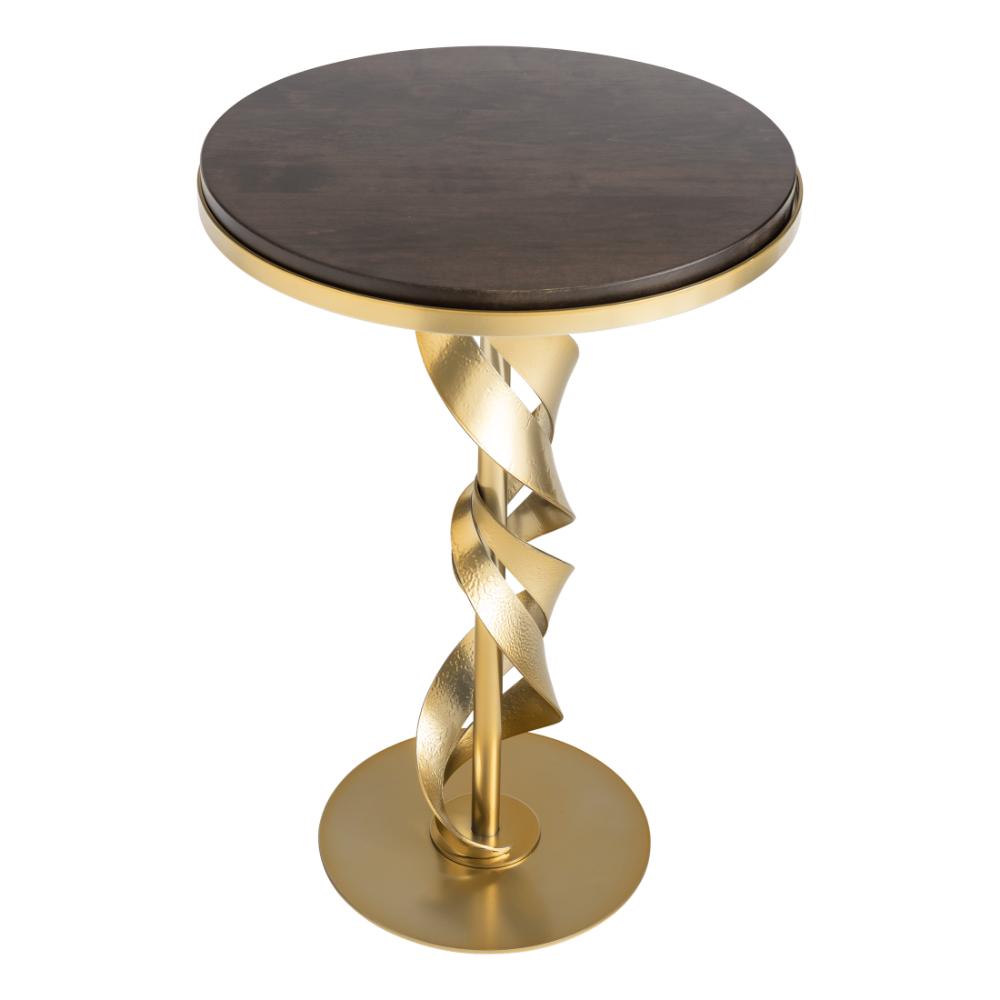 The Folio accent table's hand-forged steel ribbons form a unique design that seem to dance around the pedestal of this beautiful table, while its maple wood top adds a timeless elegance. Make an unforgettable statement of style and grace. Maple wood available in natural maple, espresso or dark grey options.