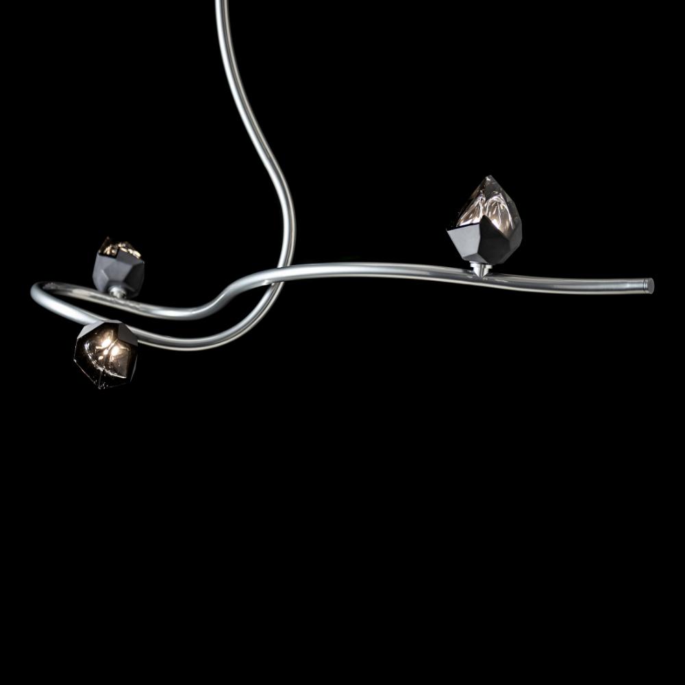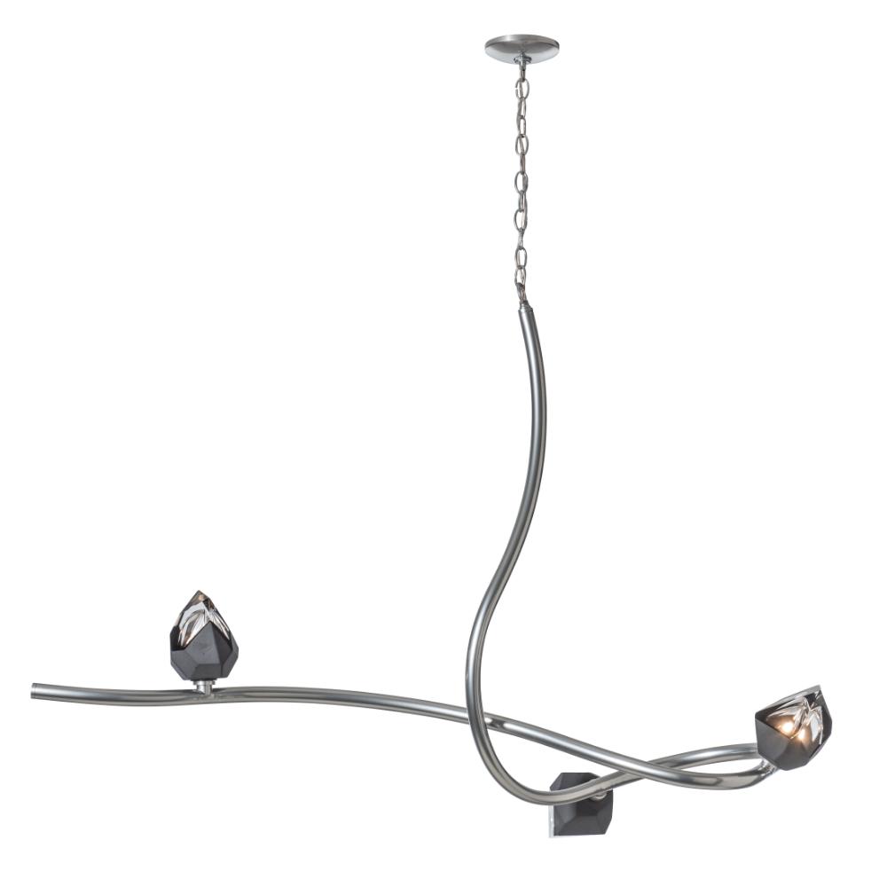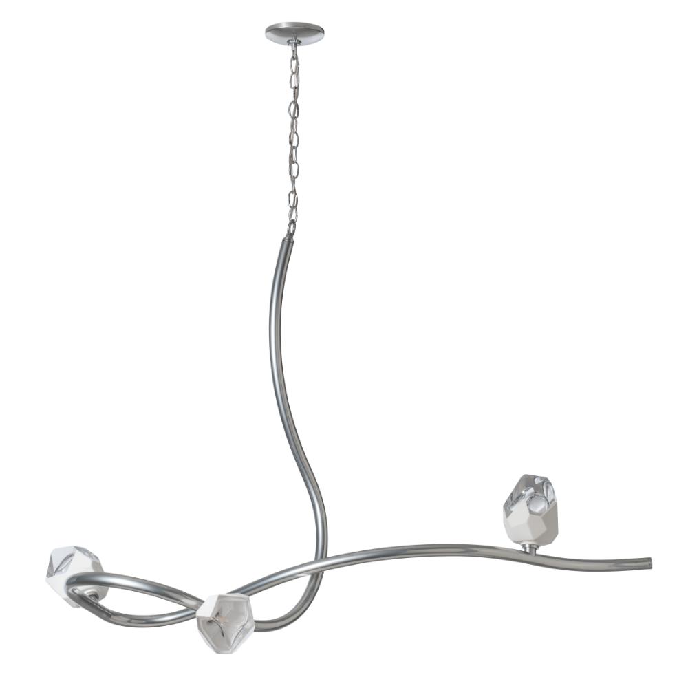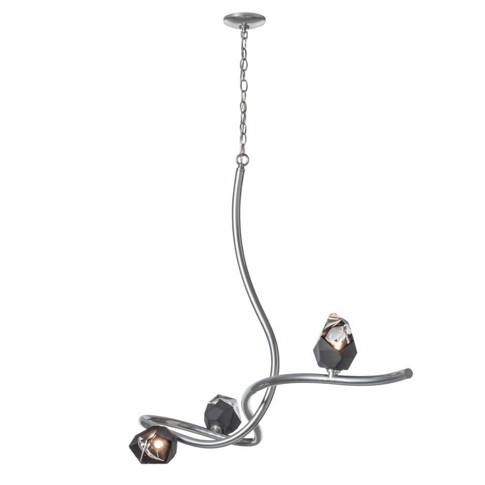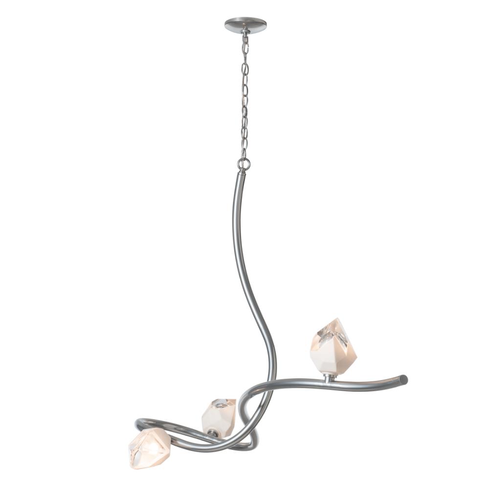 Chain-hung three light linear pendant with thick, faceted glass shades.- Sloped Ceiling: Adaptable to 45 degrees