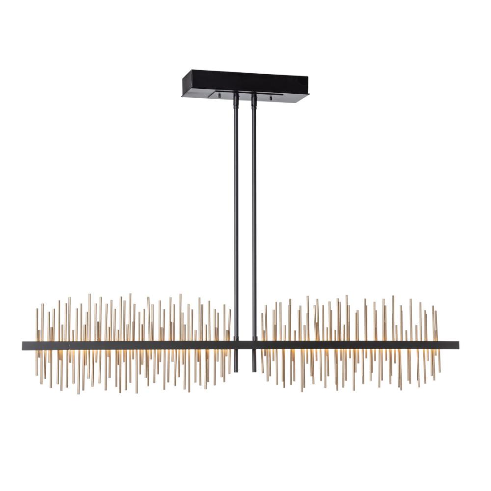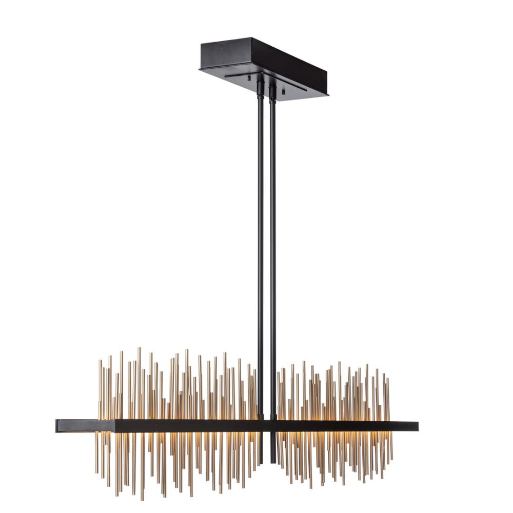 Height adjustable linear suspension LED pendant. Choose a finish for the canopy and the fixture frame and an accent for the decorative rods.- Patent