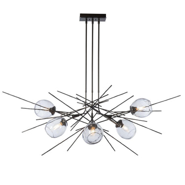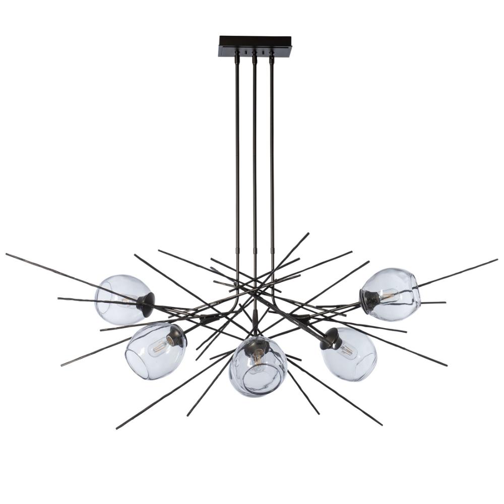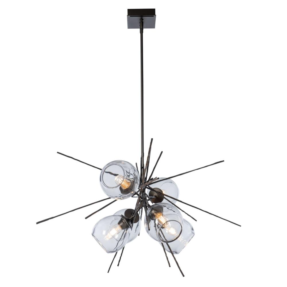 This dramatic pendant features a newly-developed technique of forging bark-like textural elements in steel. The result is the Griffin - a stunning arrangement of structure that balances the organic glass forms.
