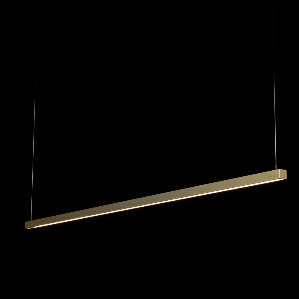 A traditional symbol of good luck, the Ingot can be made of various metals. Ours is of steel and can be finished in any of our 11 standard interior options, including Modern Brass. Deceptively simple and sleek, the Ingot houses an LED element for crisp, functional lighting. Perfect over a large desk, pool table, dining table, kitchen island or bar, or in multiples over a reception area, the Ingot's minimal profile suits a variety of styles. Part of ART + ALCHEMY by Hubbardton Forge. Love it, but need it longer? Talk with our on-site Customs team. We can do that!