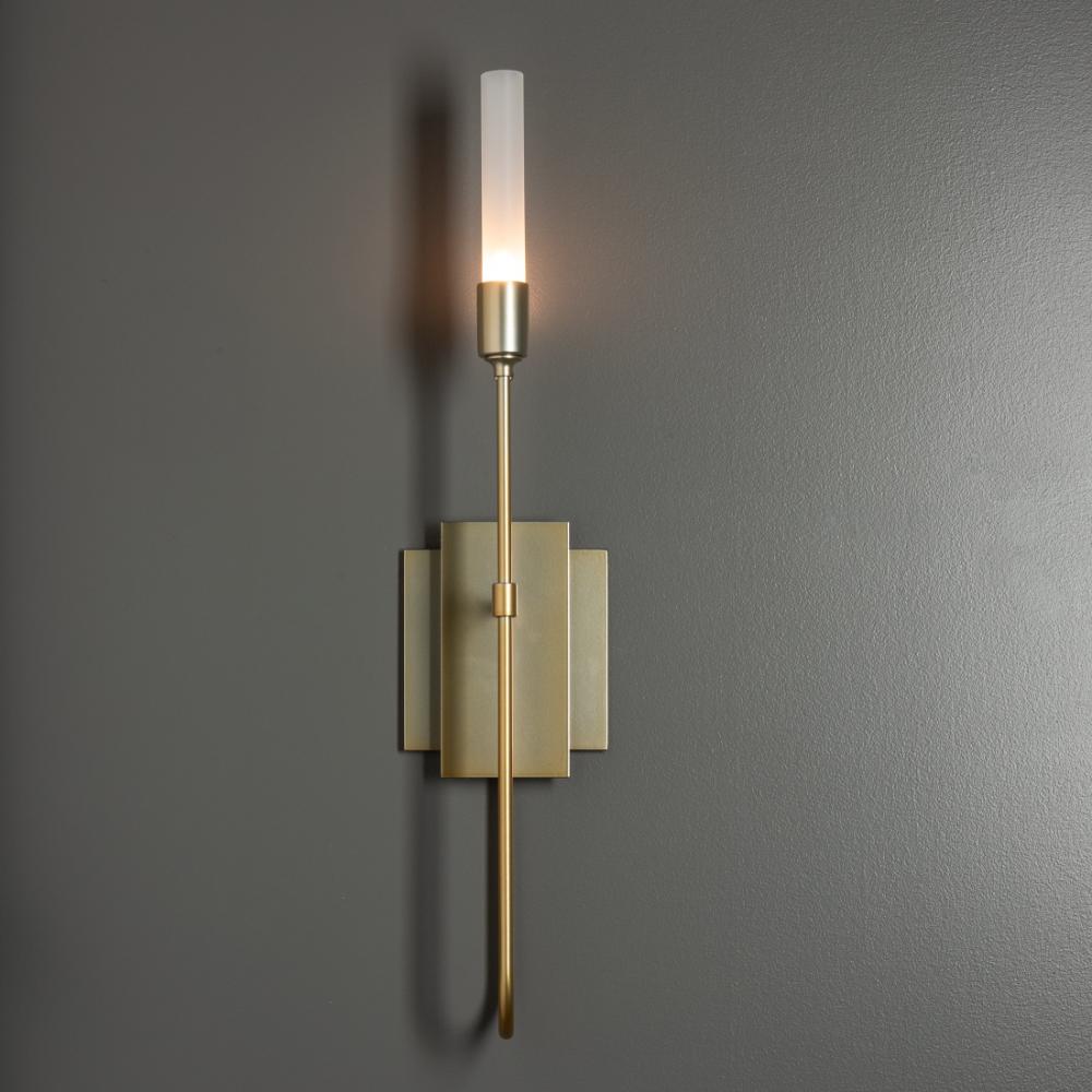 Direct wire wall sconce with glass diffuser, ADA compliant.