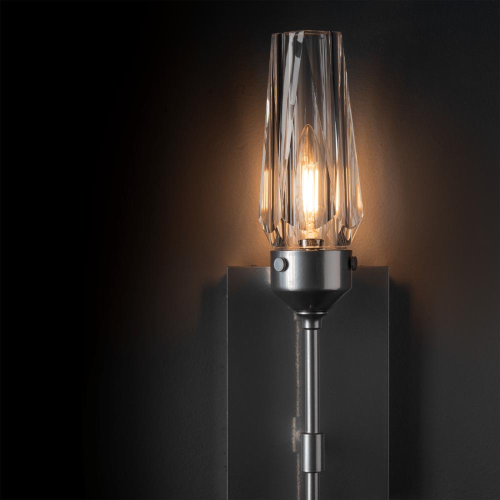 A thick, lustrous jewel of faceted crystal encases the light source within this dazzling wall sconce. The Luma Sconce is eye-catching opulence that offers a sophisticated beauty even when unlit.