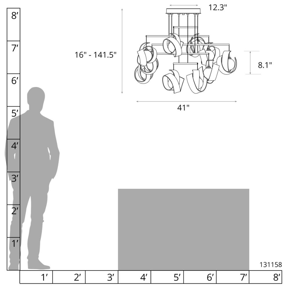 - Canopy : 12.3”W x 1.7”H x 12.3”D