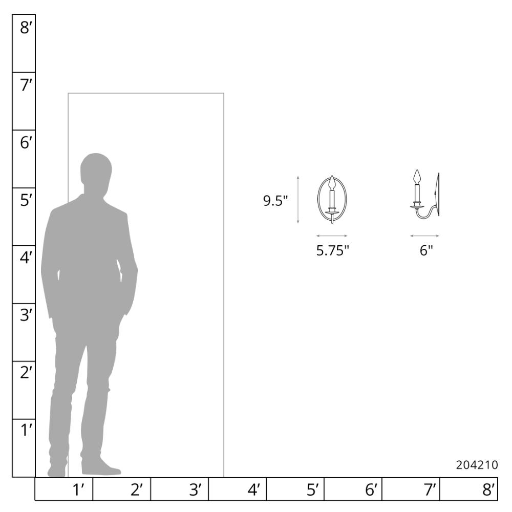 One light traditional candelabra sconce with an oval backplate.
