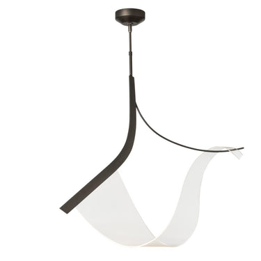 Fluid and ethereal, the Sling Pendant gives new meaning to "form and function", An elegantly swooping form makes light itself into a sculptural element. Held by steel handforged by Vermont metalcrafters, the Sling Pendant adds beauty to its space.