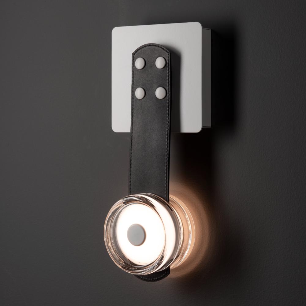 Part of the ART + ALCHEMY by Hubbardton Forge Collection, the SNAPS LED Sconce features a single alabaster-LED module with a fine leather strap and small, square steel wall mount. Designed by HF's Andy Morter, the white alabaster stone's translucence brings to light its natural variances and exquisite beauty.