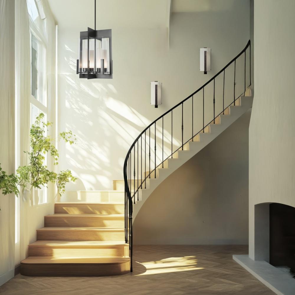 Looking for a traditional lantern with a contemporary twist? The Summit is a large scale interior lantern featuring four lit frosted cylinders within large, clear vertical rectangular glass. Intersecting steel plates give a modern, dramatic feel, with both glass and steel elements having clean 90º angles.